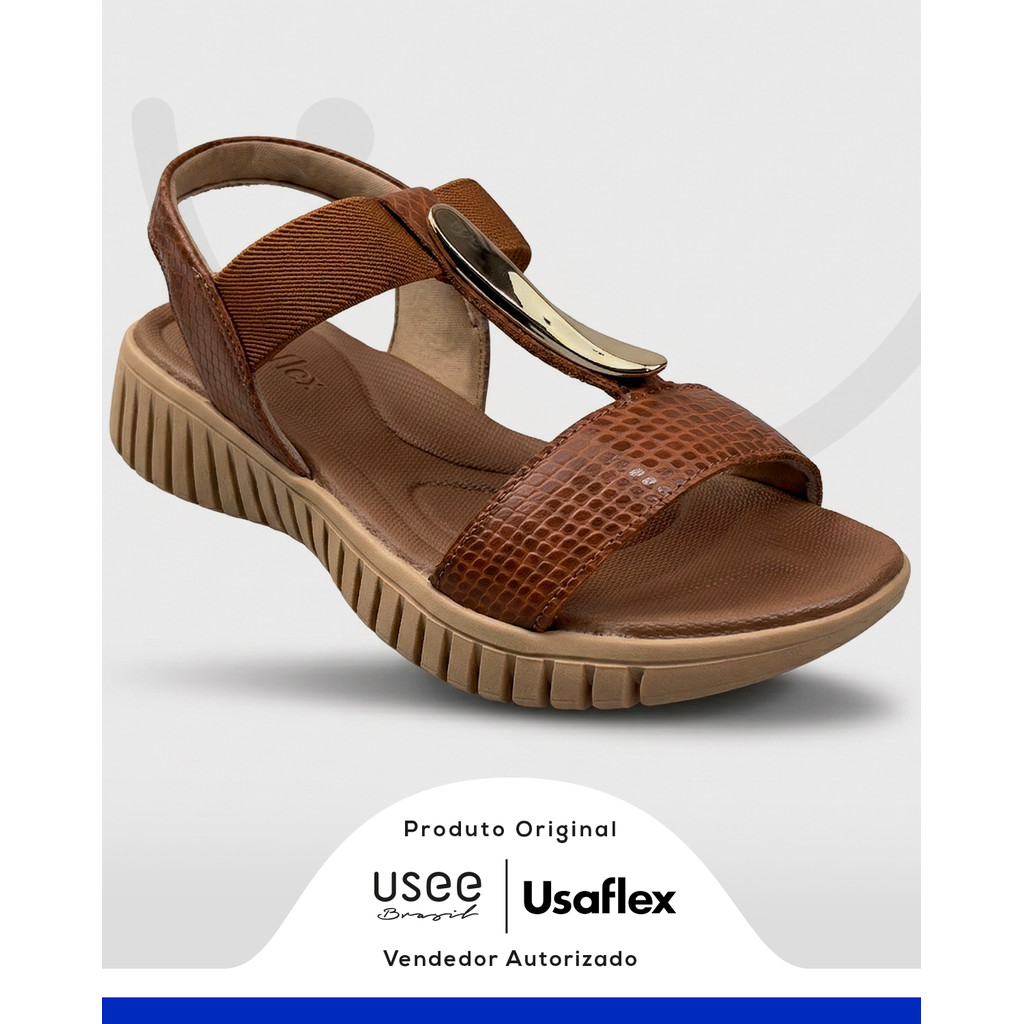 Sandália Feminina Usaflex Couro Original Confortável Calce Fácil Anatômica