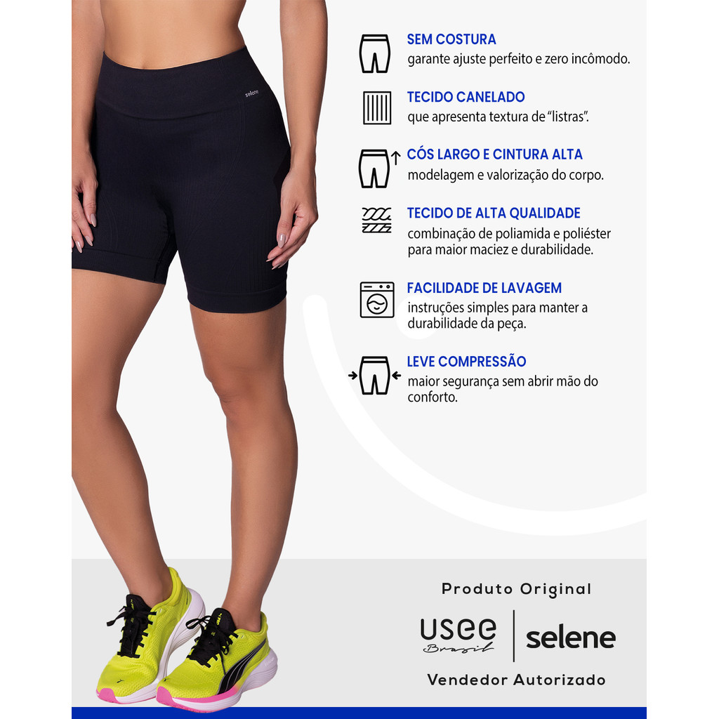 Short Fitness Selene Feminino Sem Costura Cintura Alta Original