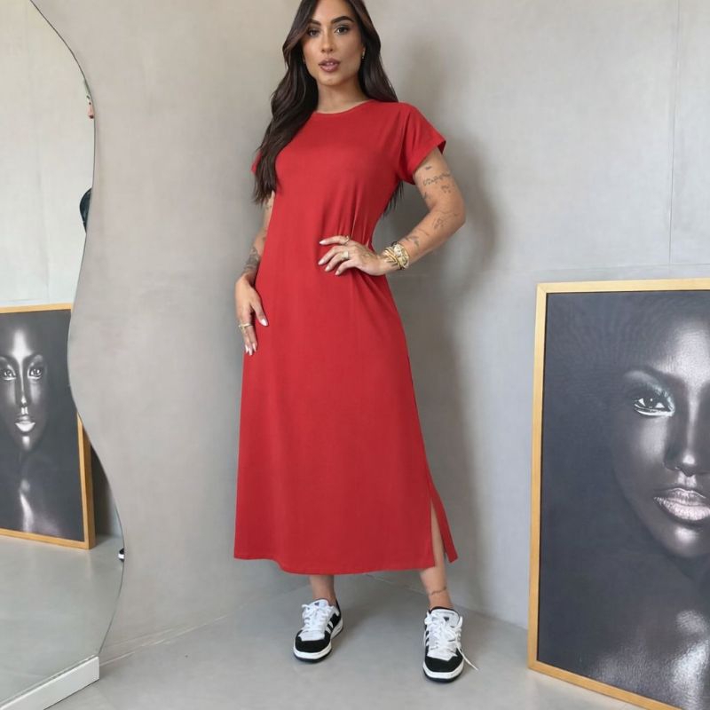 Vestido Midi Feminino Casual.