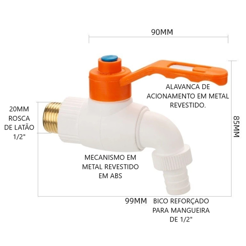 Kit 1/2/3/4 Torneira Esfera 1/2" em Latão Encapado com Plástico – Ideal Jardim Lavanderia e Garagem