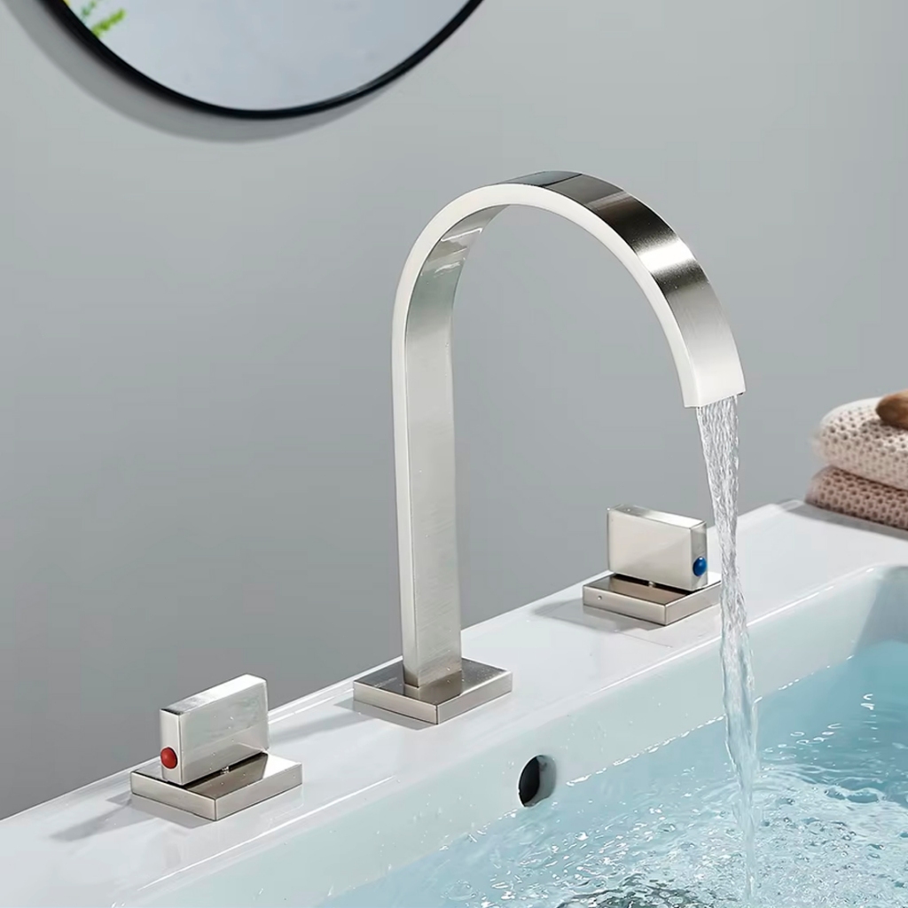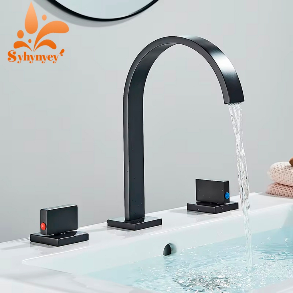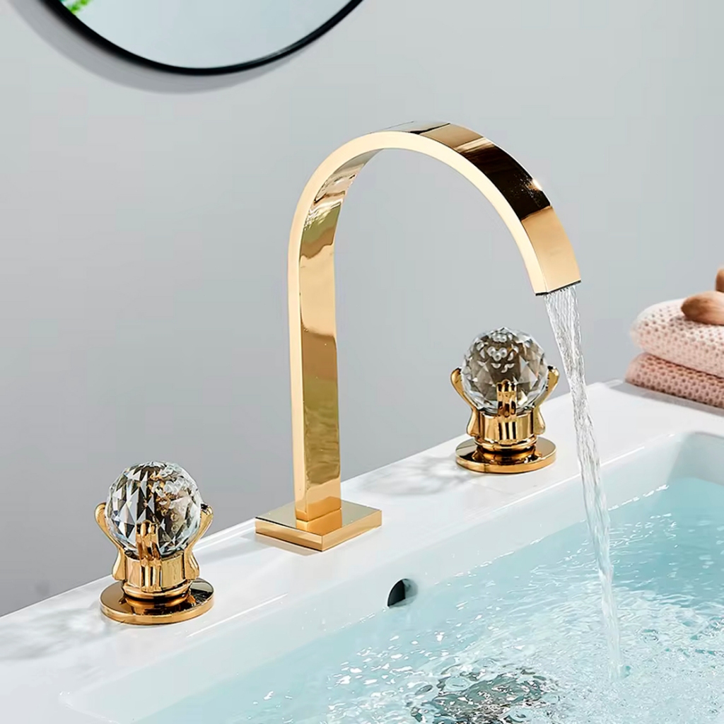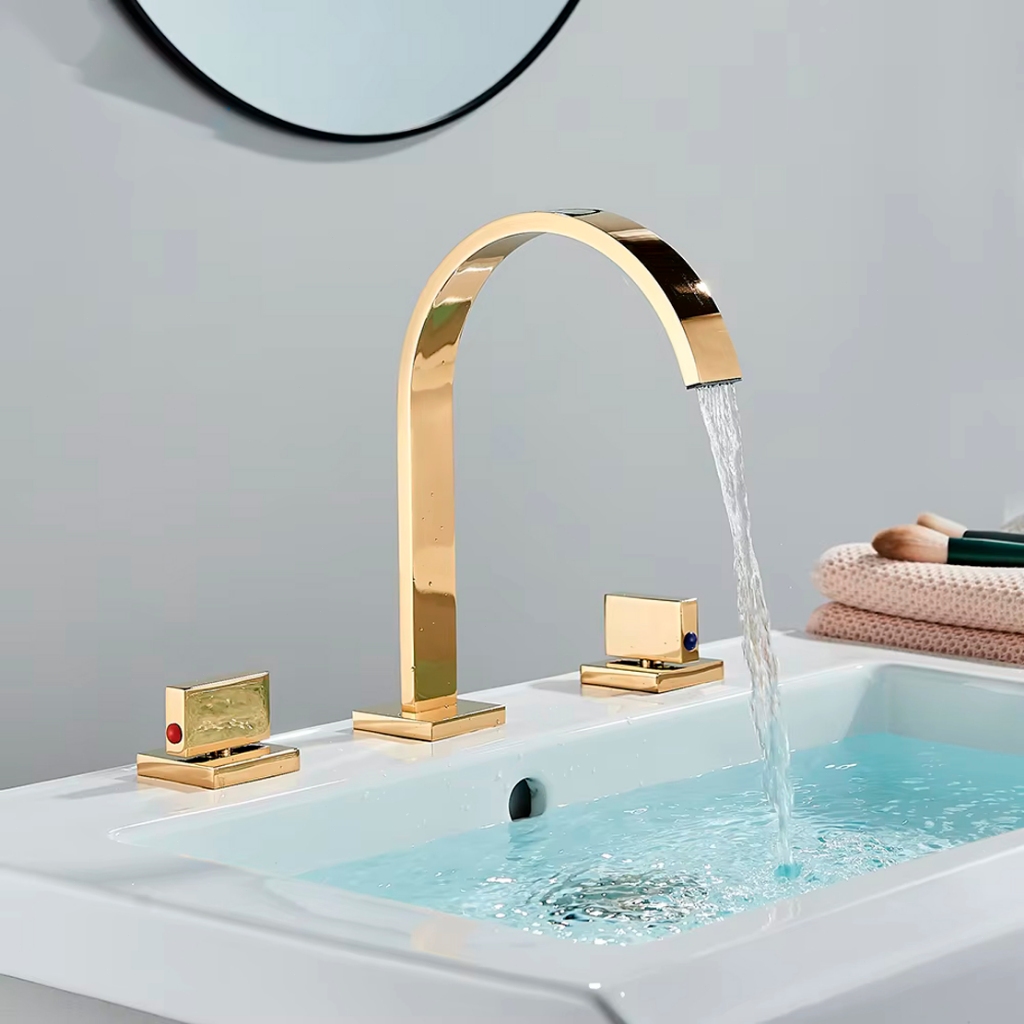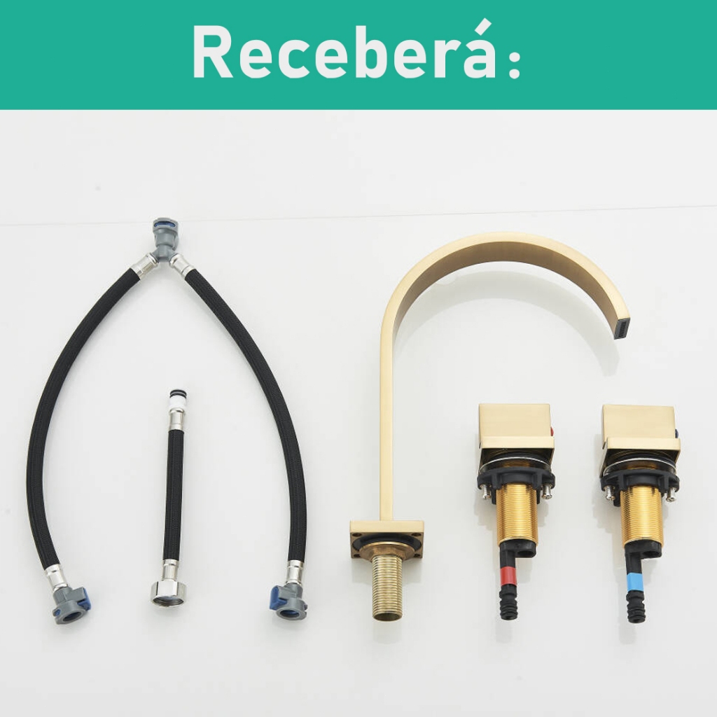 Torneira Para Banheiro Bancada Alças Duplas Três Furos Instalação Torneira Curva