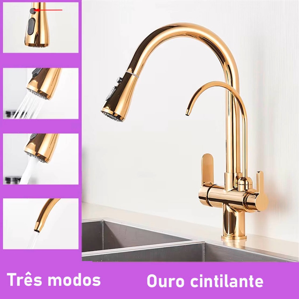 Torneira de cozinha Torneira de água pura Preto mate Torneira de água potável quente e fria Torneira misturadora destacá