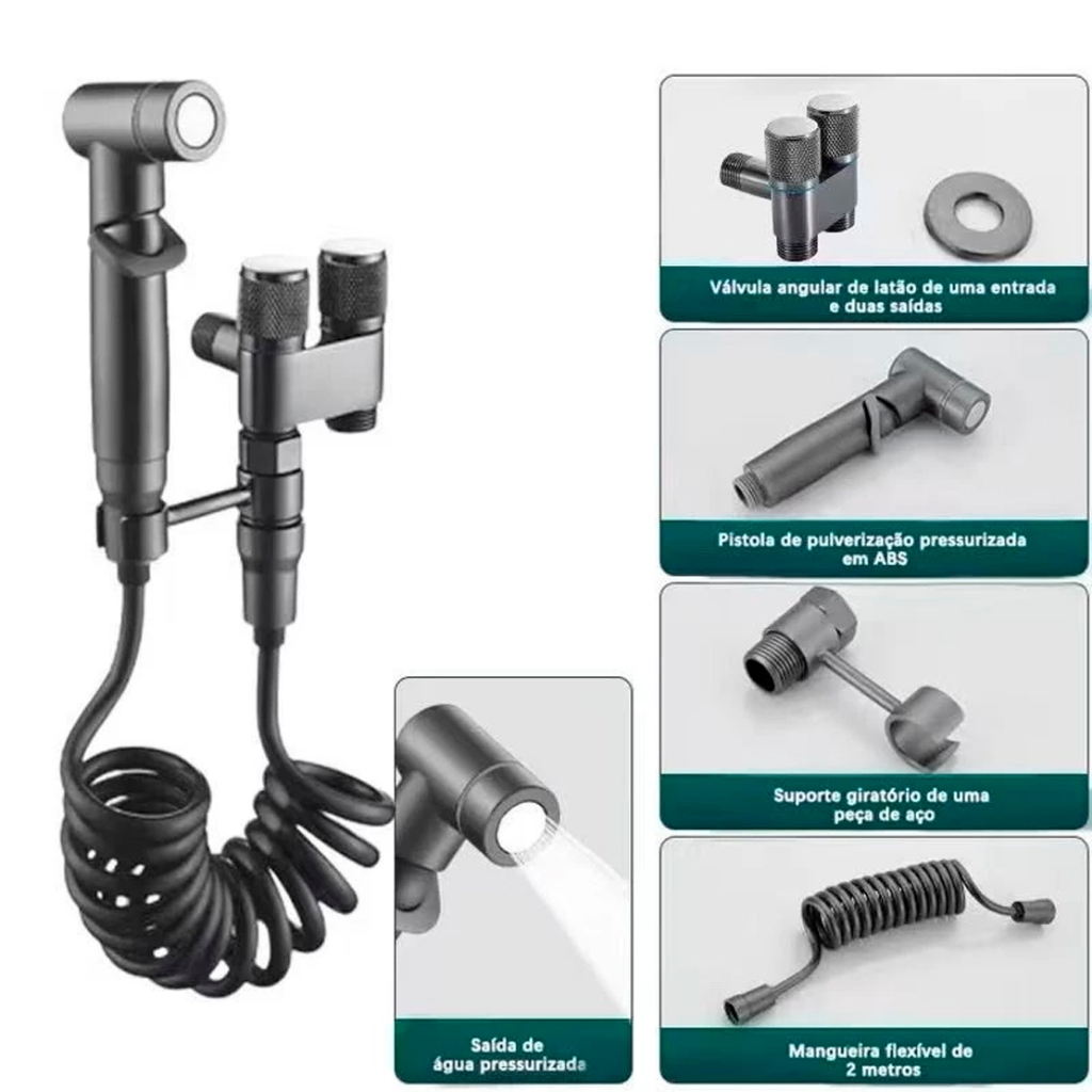 KIT Banheiro Ducha Higiênica Duas Saídas De 1/2 Mm Com Registro Conjunto De Pulverizador