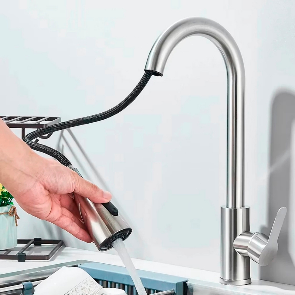 Torneira De Cozinha Gourmet Alça Única Com Extensor De Spray Tubo De Água Flexível Superior Banhado