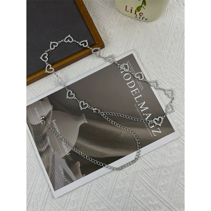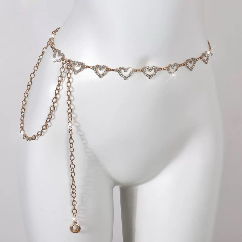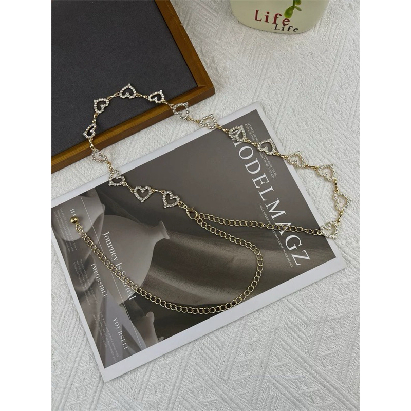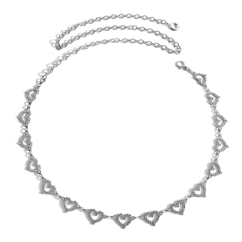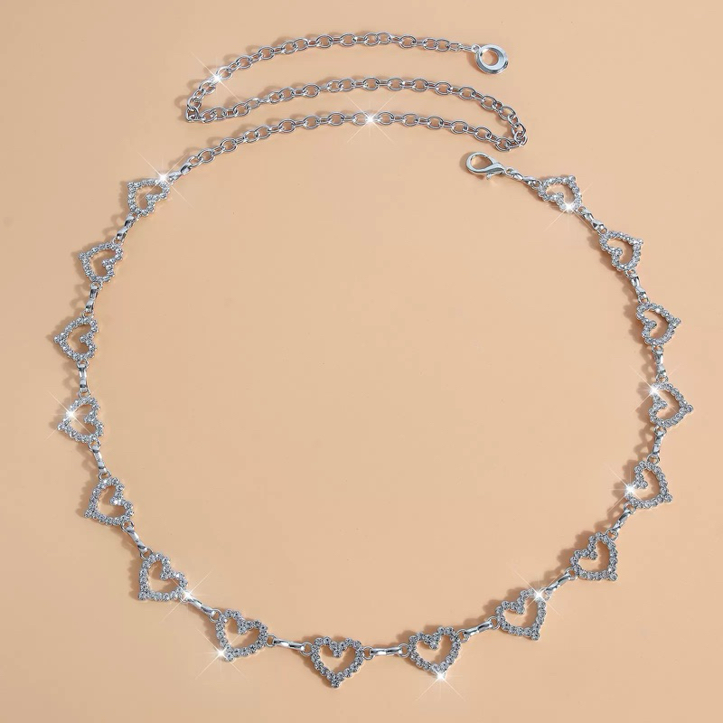 Corrente de cintura com strass de coração para mulheres, férias de verão, praia, versátil, temperamento, vestido, jeans