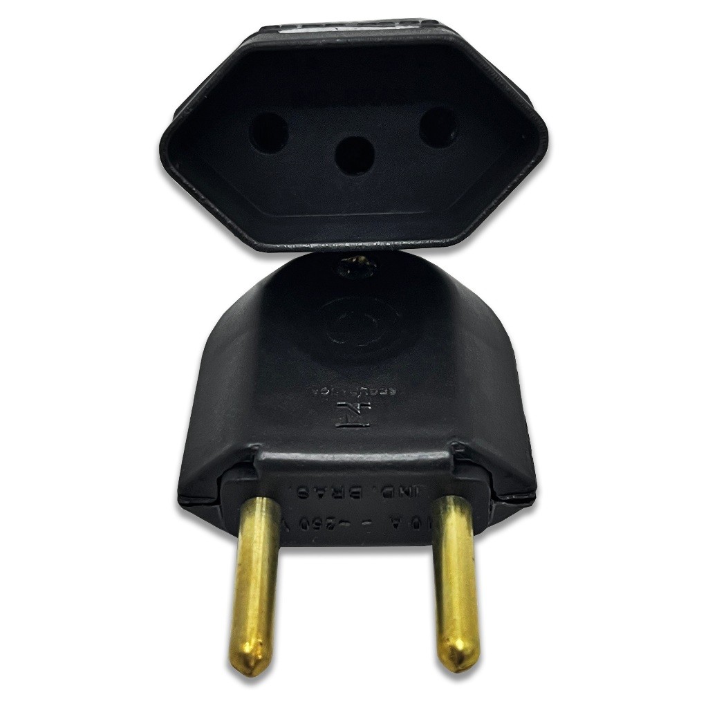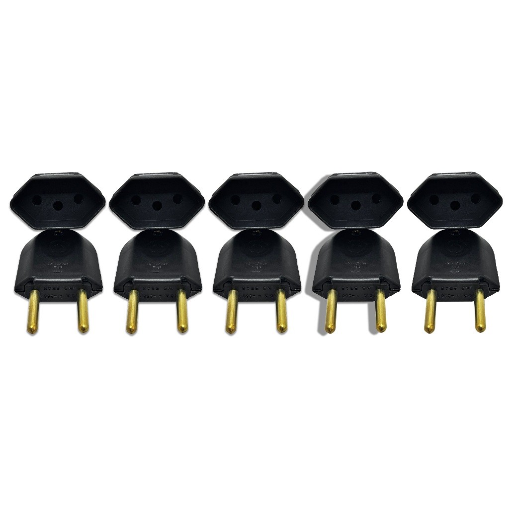 Kit 5 Plugue Pino Macho 10a 2p + 5 Tomada Fêmea 10a Preto