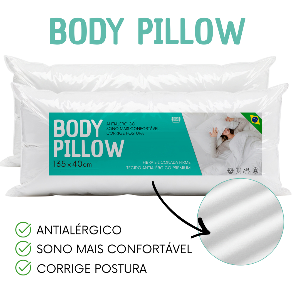 Kit 2 Travesseiro De Corpo Xuxao Gigante 1,35m x 40cm Fibra Siliconada Firme Antialérgico Lavável