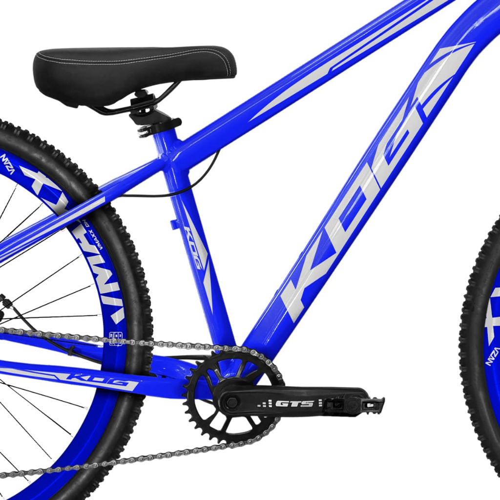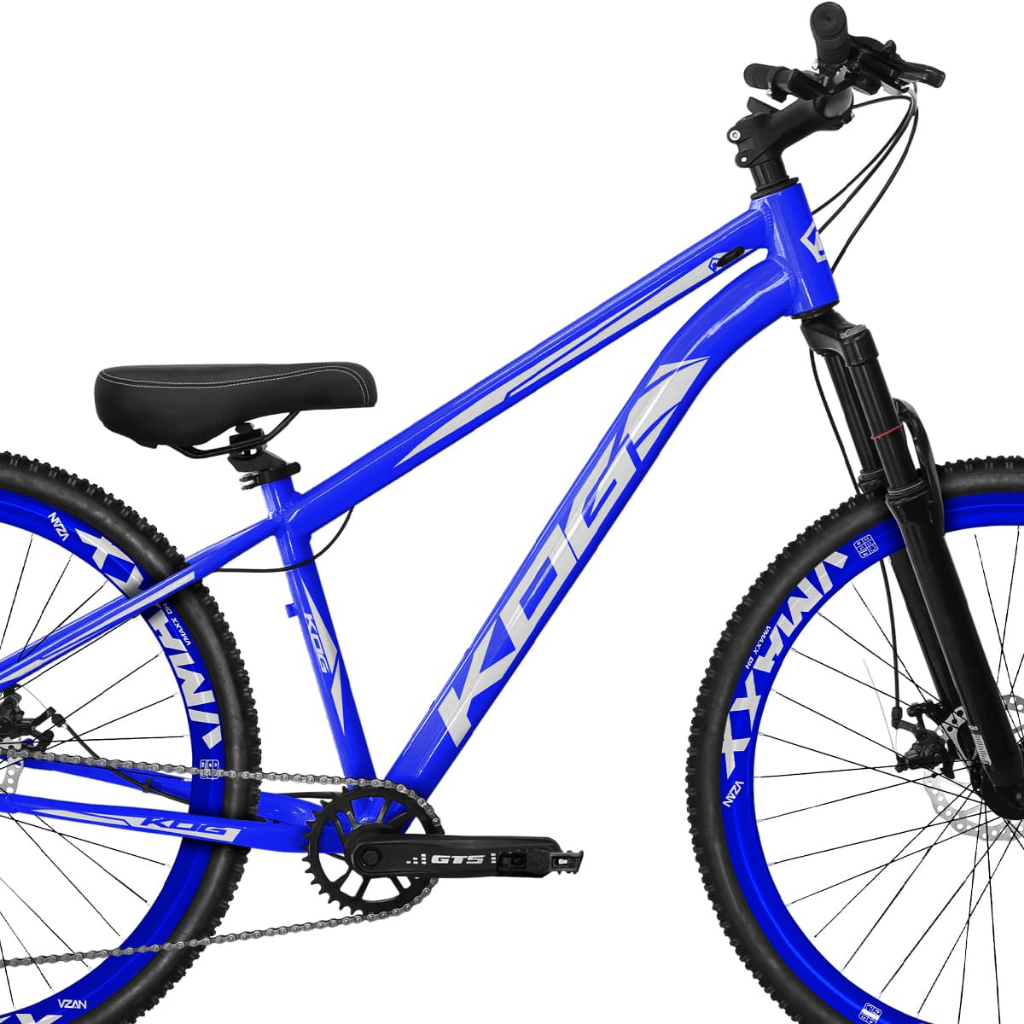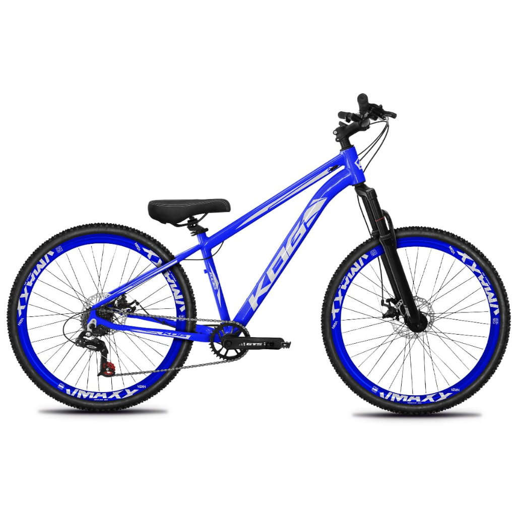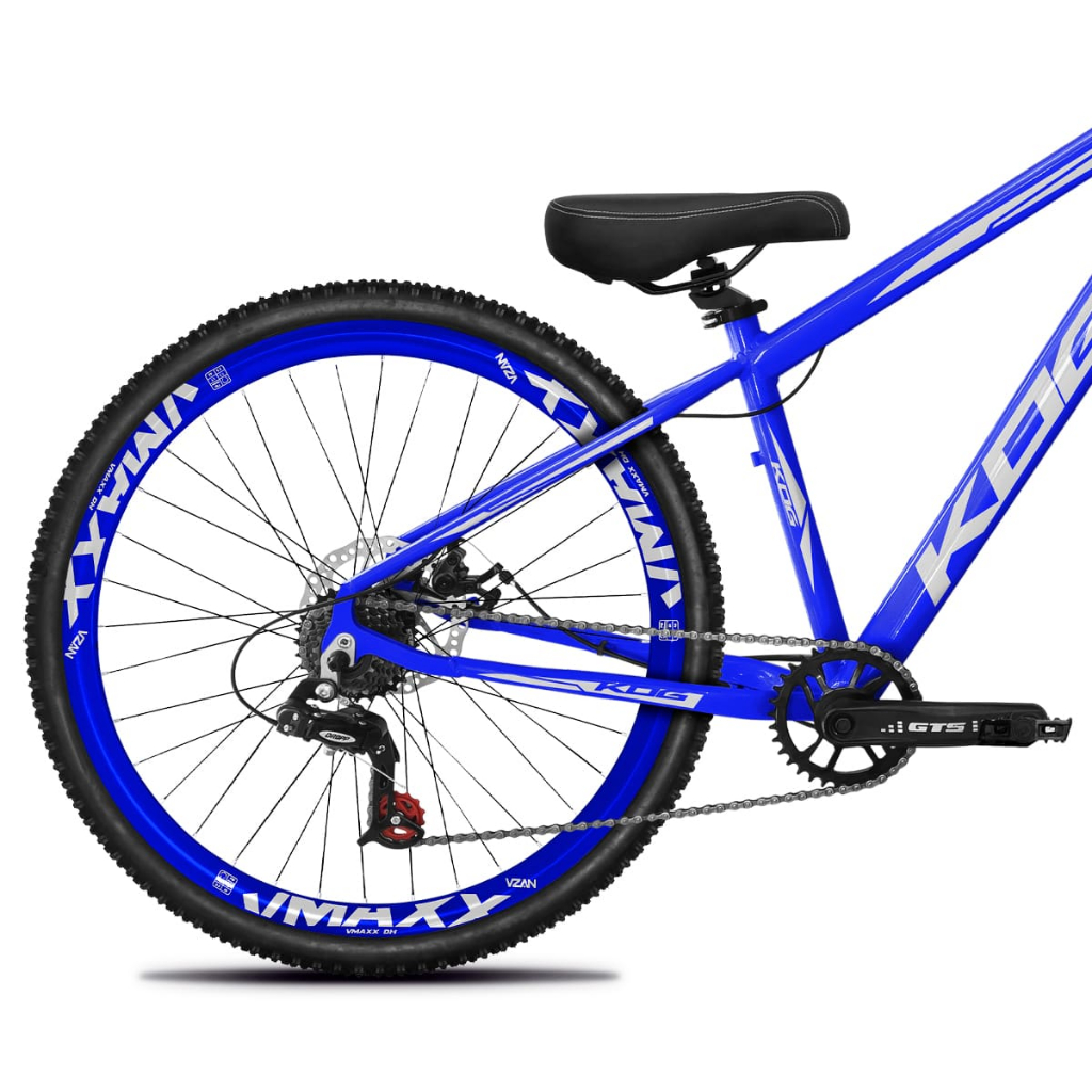 Bicicleta KOG Freeride 7V Freio a Disco Coroa Unica Tipo Viking - Azul Cobalto com Branco Rodas Vmaxx Azul Neon