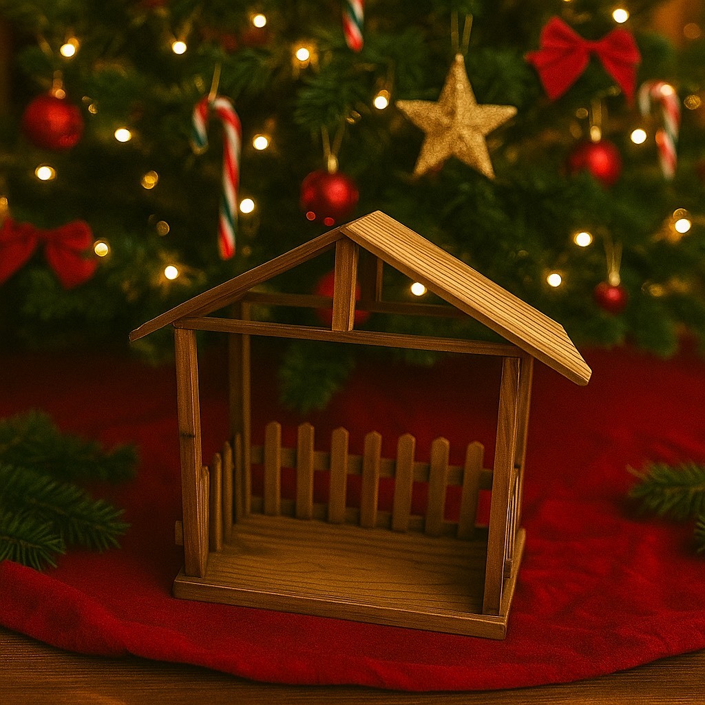 Kit 2 Presépio Casinha Madeira Reforçada Cerca Manjedoura Decoração Natal