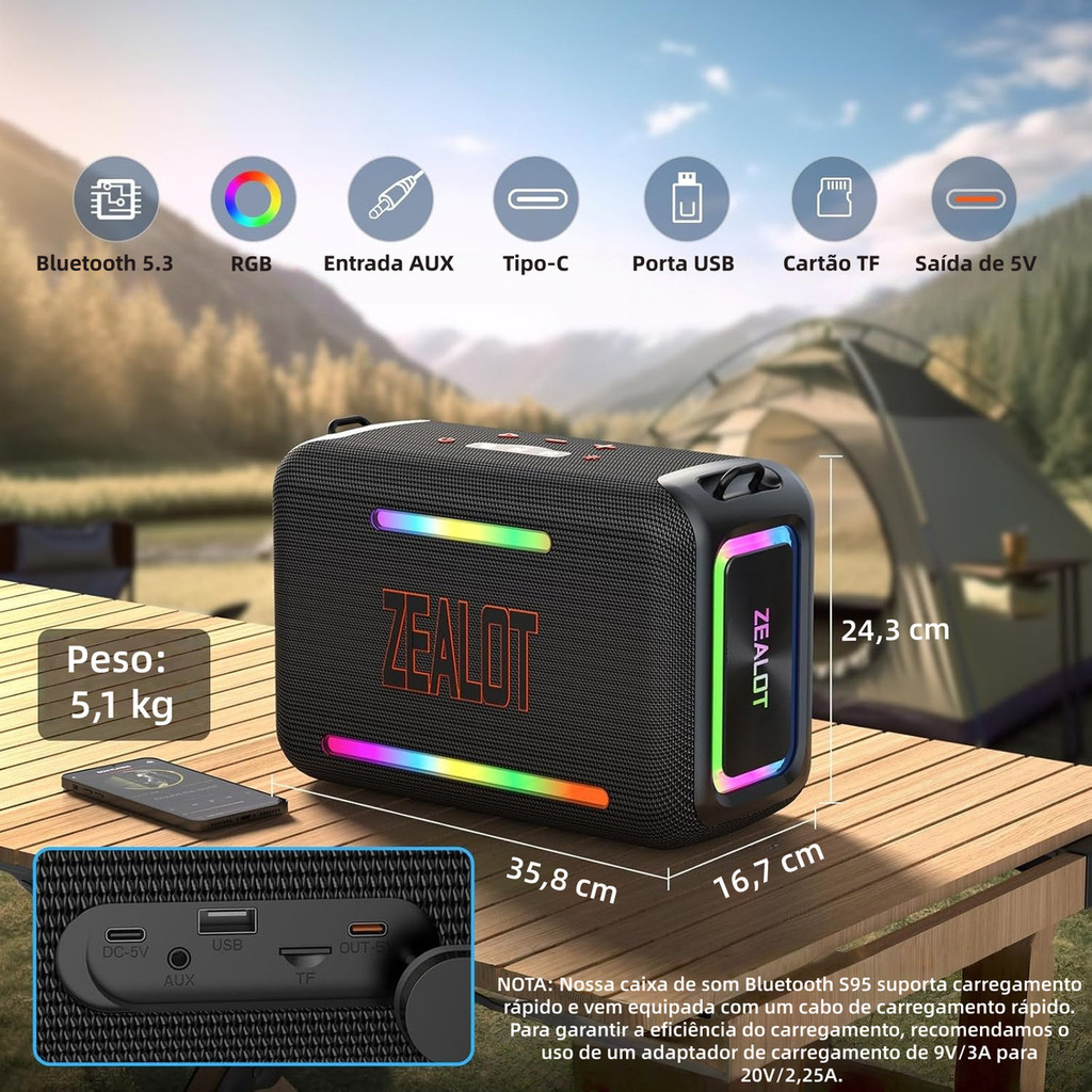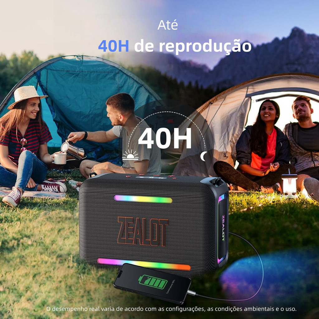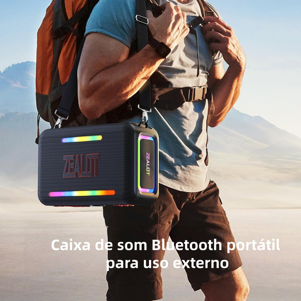 Caixa de Som Zealot S95 para Festa 120W - TWS Stereo LED RGB Portátil À Prova D'Água