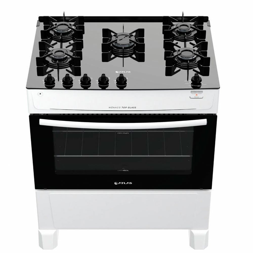 Fogão de Piso Atlas 5 Bocas Monaco Acendimento Automático Top Glass