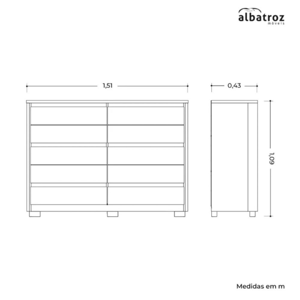 Cômoda 10 Gavetas Duetto Albatroz