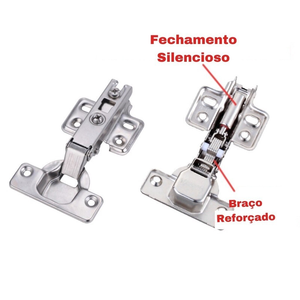 Kit 20 Dobradiças Reta Com Amortecedor Para Armários 35mm