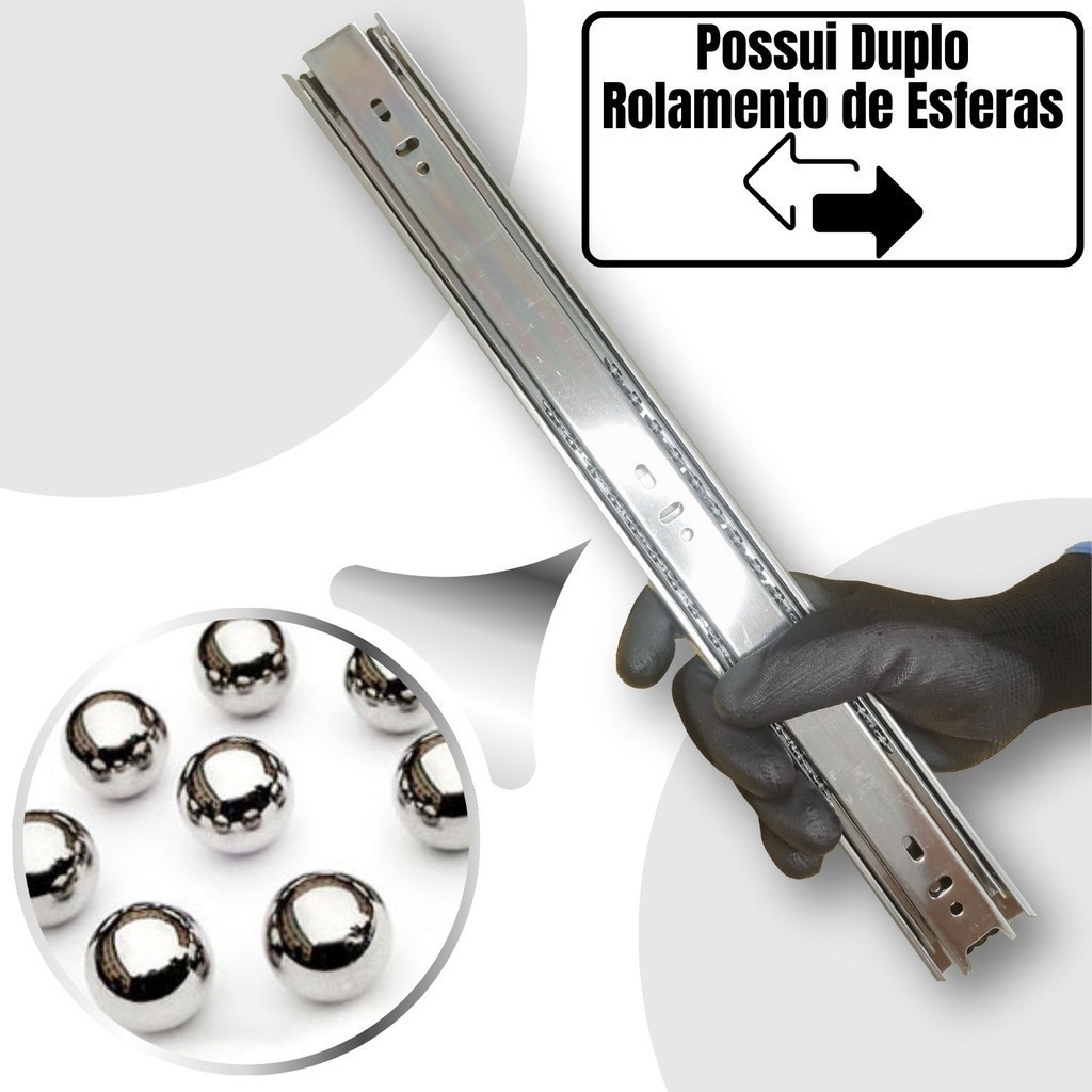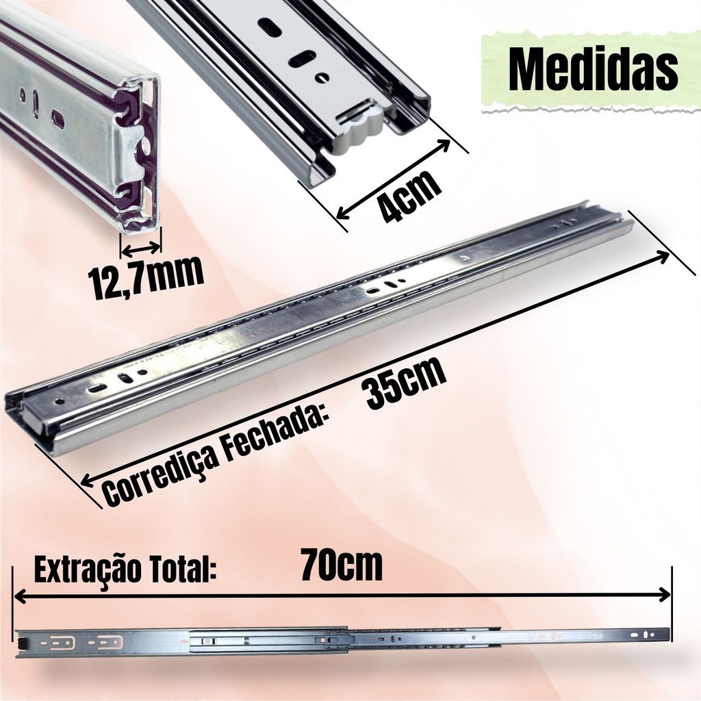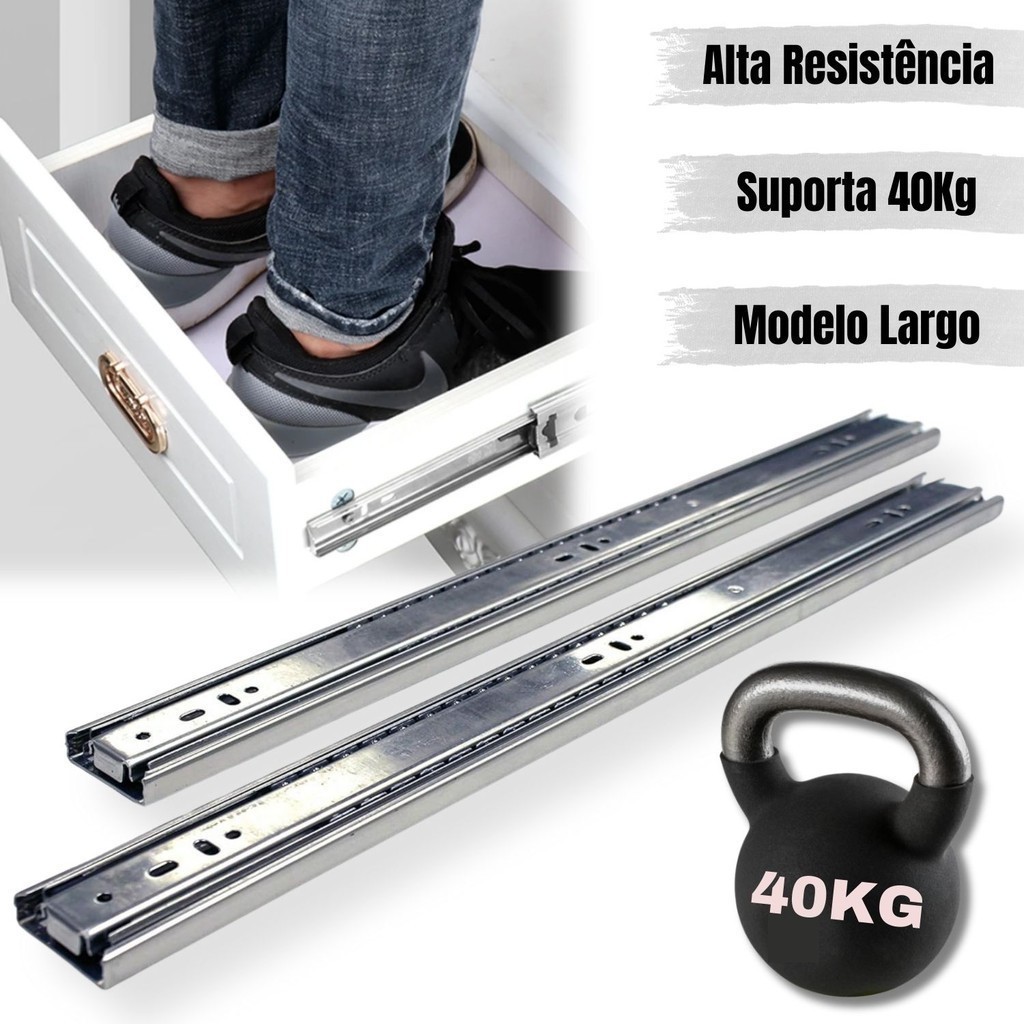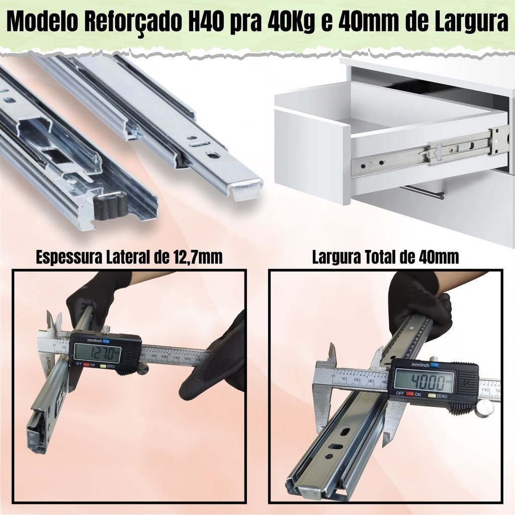 2 Corrediça Telescópica H40 35cm 1 PAR 350mm Reforçada 40KG Trilho Gaveta Móveis Armário Galvanizado
