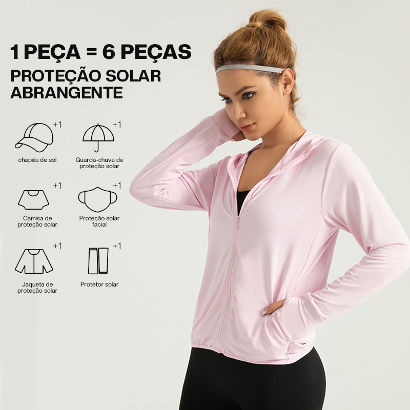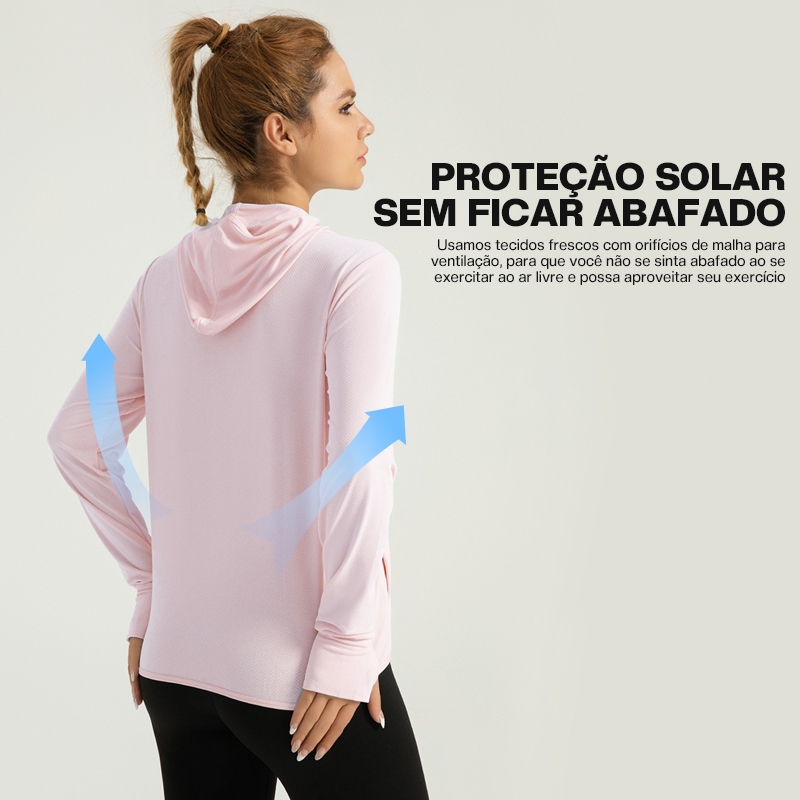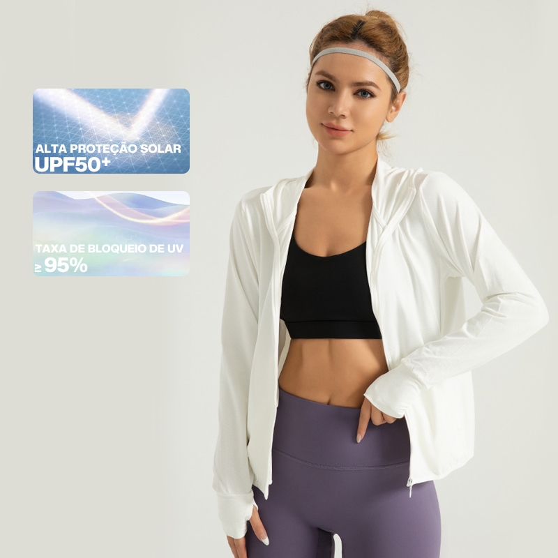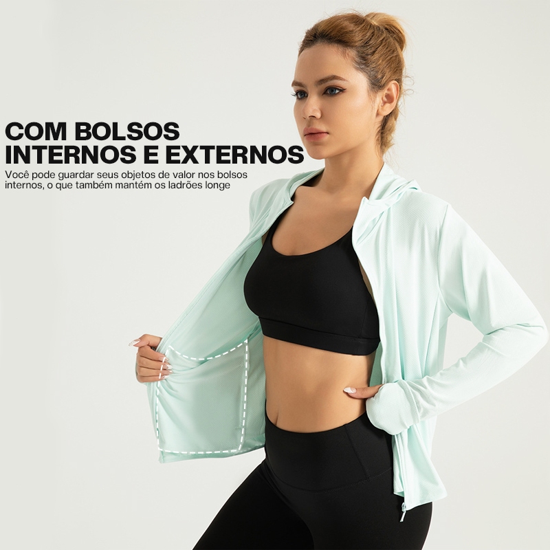 Liouty Jaqueta esportiva feminina anti-UV 50+UPF Com capuz, 2 bolsos internos + 2 bolsos externos (model WT02)