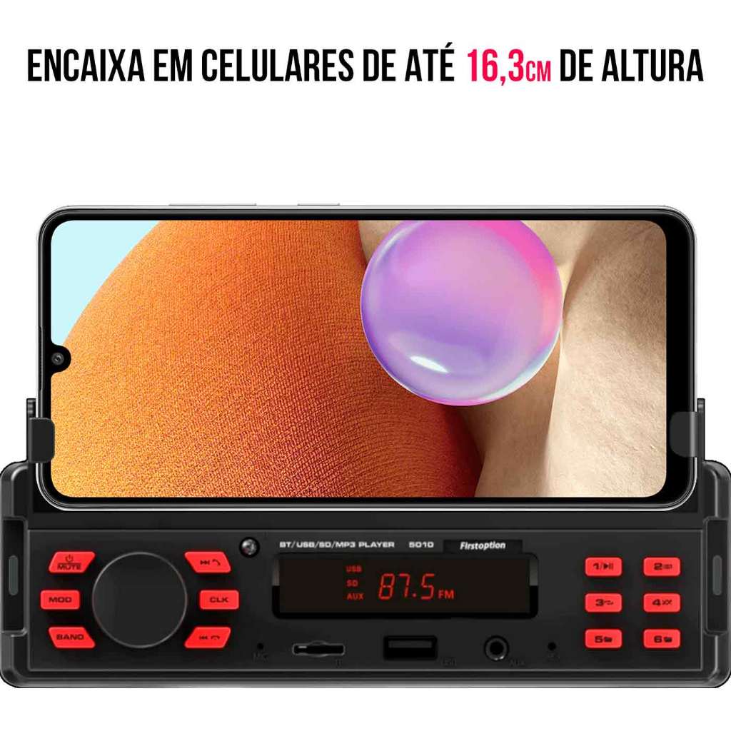 Rádio MP3 Player Som Automotivo Bluetooth Universal Suporte para Celular USB SD First Option 5010