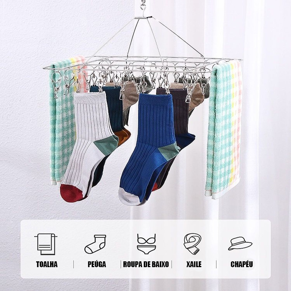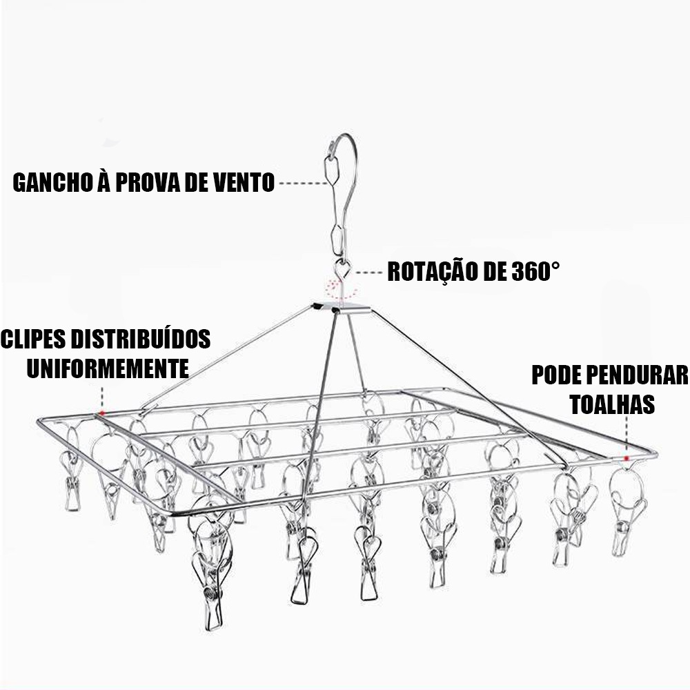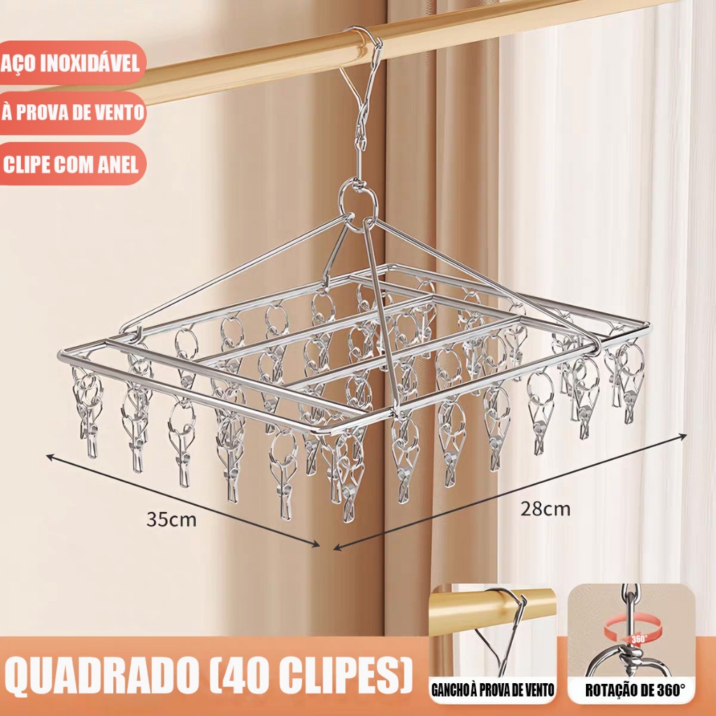 Varal De 40 Clips Inox Prendedores Pratico E Retrátil Cabide Para Roupas Intimas Para Pequenas