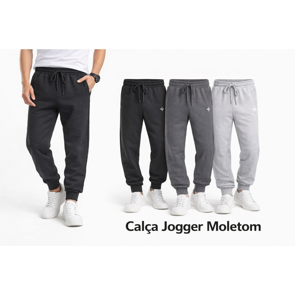 Kit até 2 Calça Moletom Jogger Unissex Masculina Feminina Bolso Cordão Academia