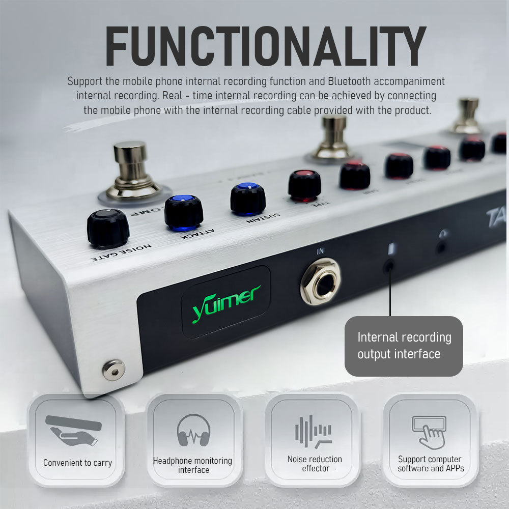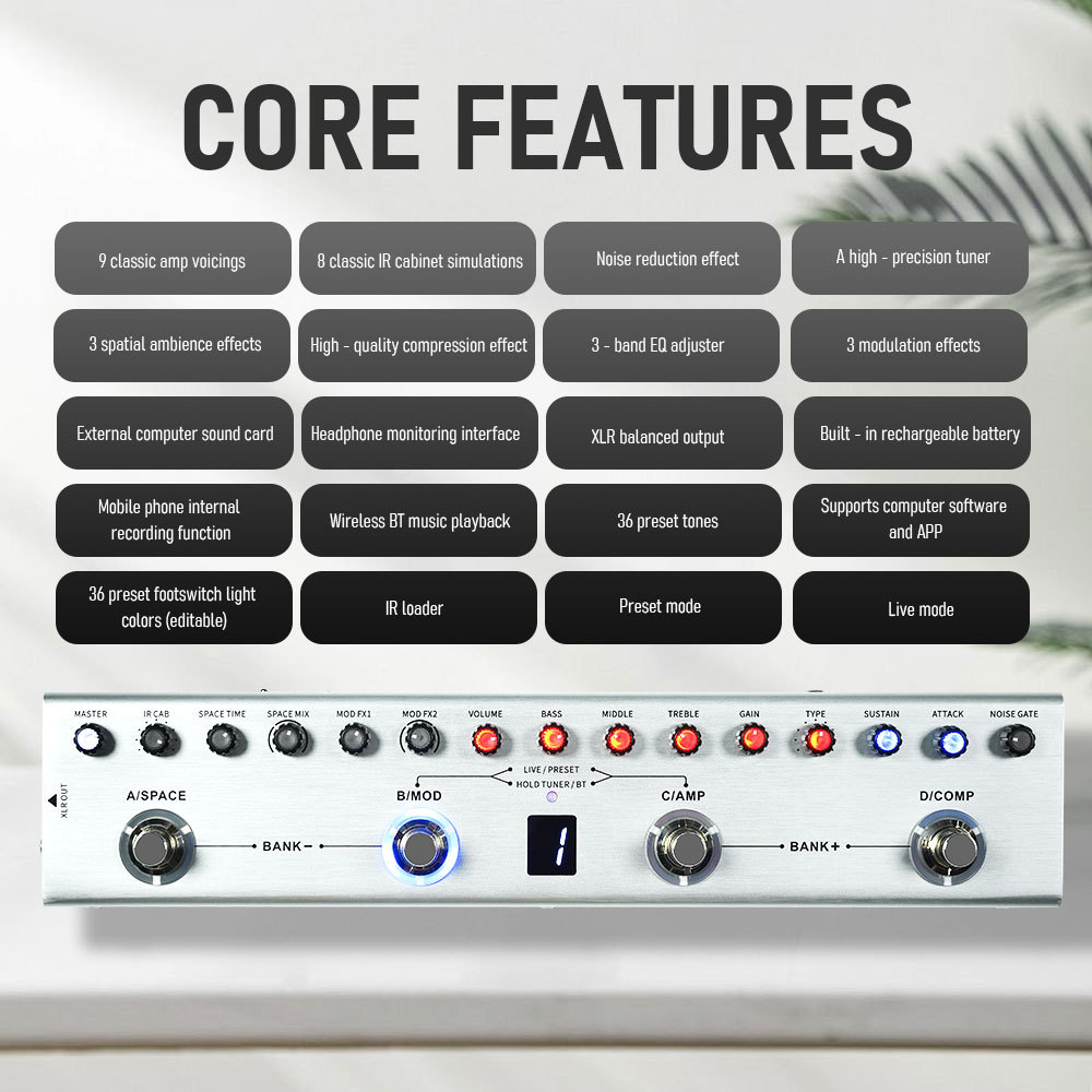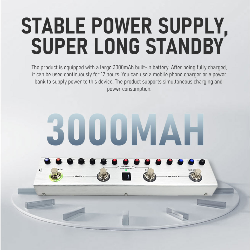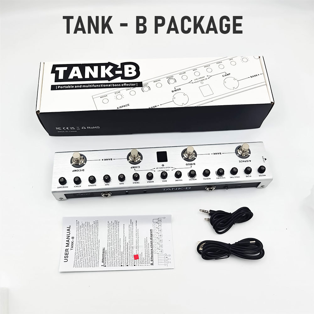 Pedal de baixo multiefeito Tank-B Recarregável 36 predefinições 9 slots de pré-amplificador 8 slots 3 efeitos