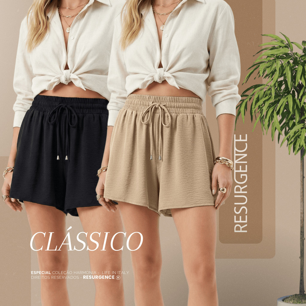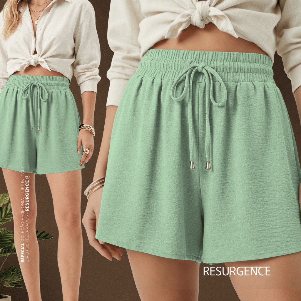 Short Feminino Soltinho Cintura Alta Duna Elástico Confortável Tendência Verão Básico Chique Fresco