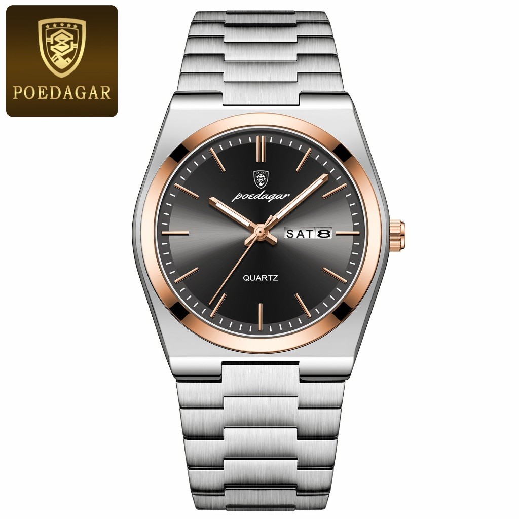 POEDAGAR Relógio Masculino De Luxo Quartzo Aço Inoxidável Para Semana Brilhante Relógios De Pulso Casuais À Prova D'água