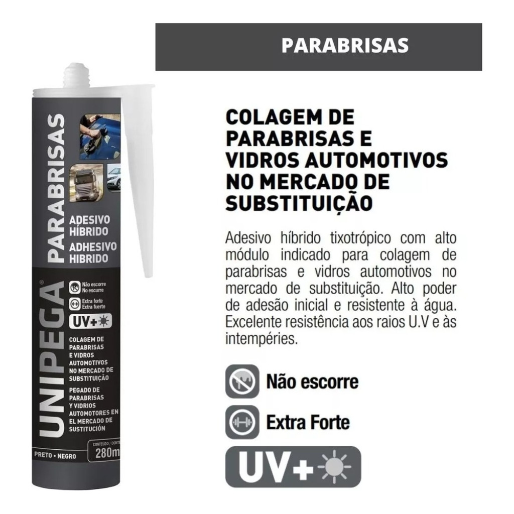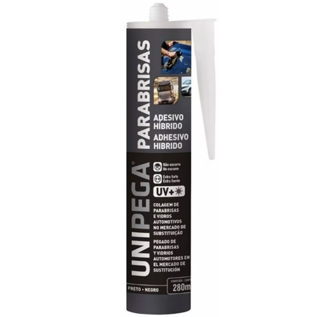 Cola Pu Parabrisa Carro Vidro Preta Unipega 400g + Aplicador