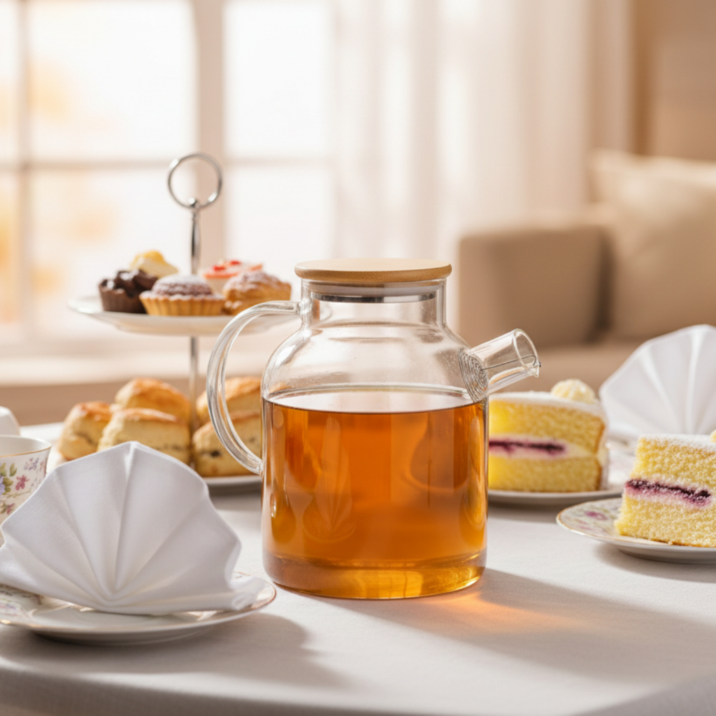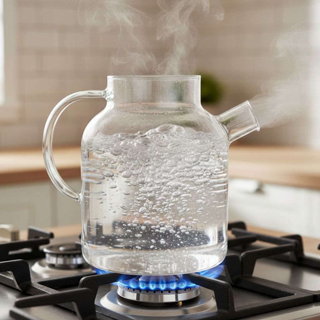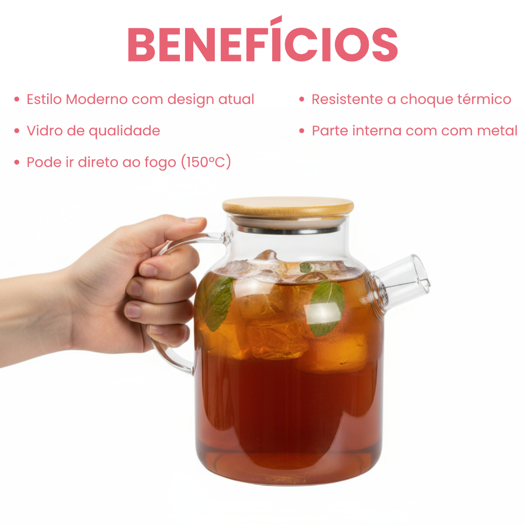 Chaleira Bule Borossilicato 1800Ml Tamp Bambu e Inox Resistente ao Fogo