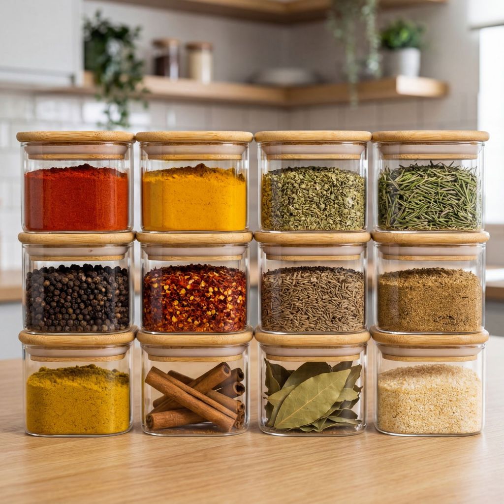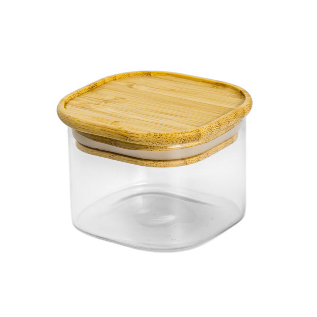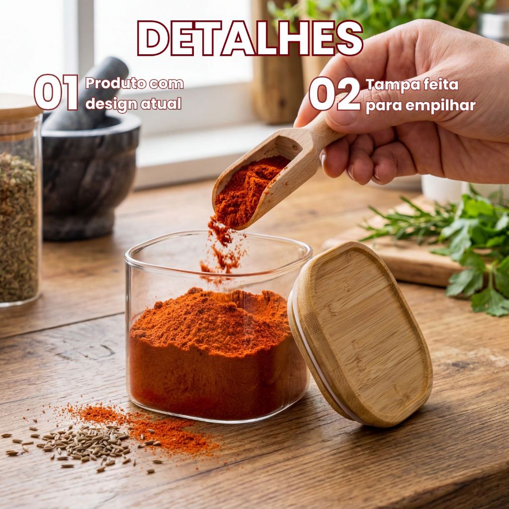 Kit 12 Pote De Vidro Porta Tempero Mantimentos Quadrado Borossilicato Tampa De Bambu 250ml
