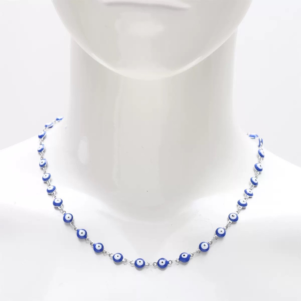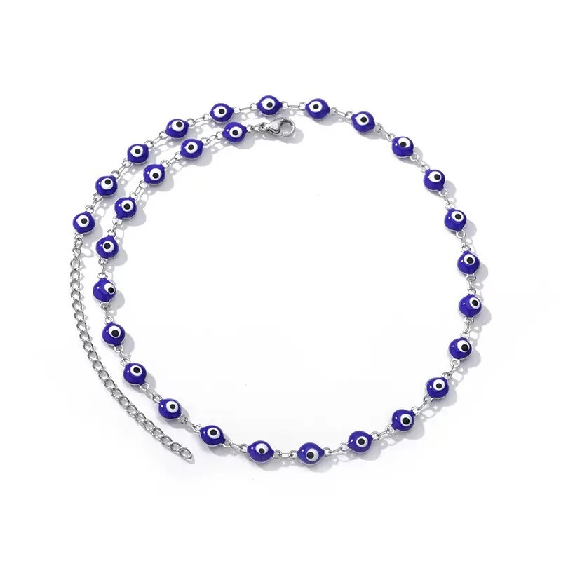 Colar Olho Grego em Vidro Colorido / Azul – Corrente Aço Inoxidável Ajustável
