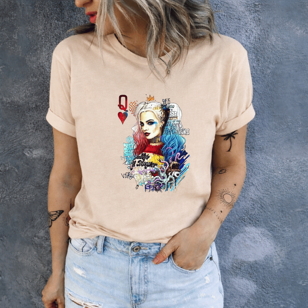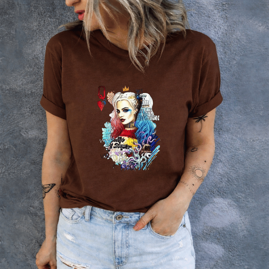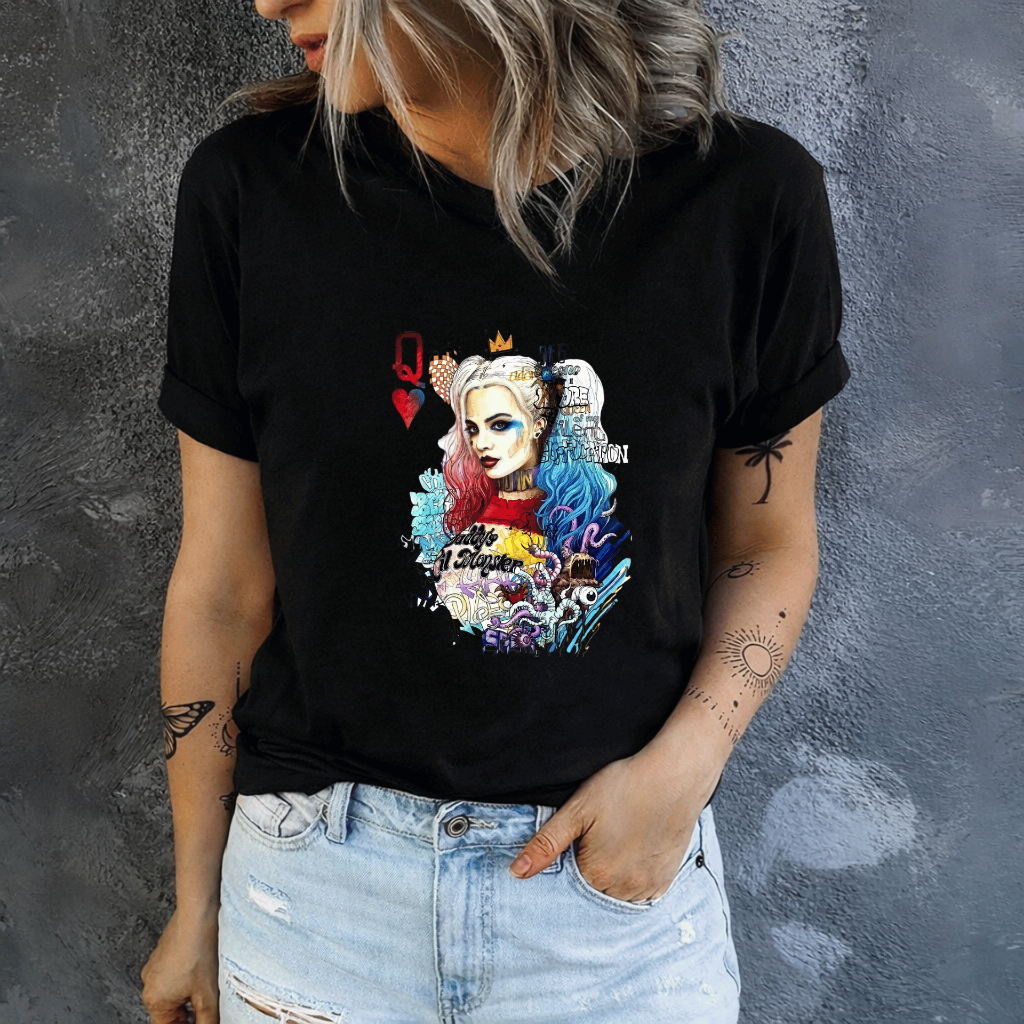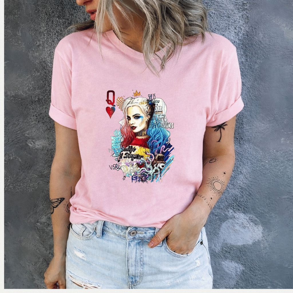 Camiseta Feminina Estampada Arlequina Confortavel Casual Dia a Dia 100% Algodão Envio Rapido