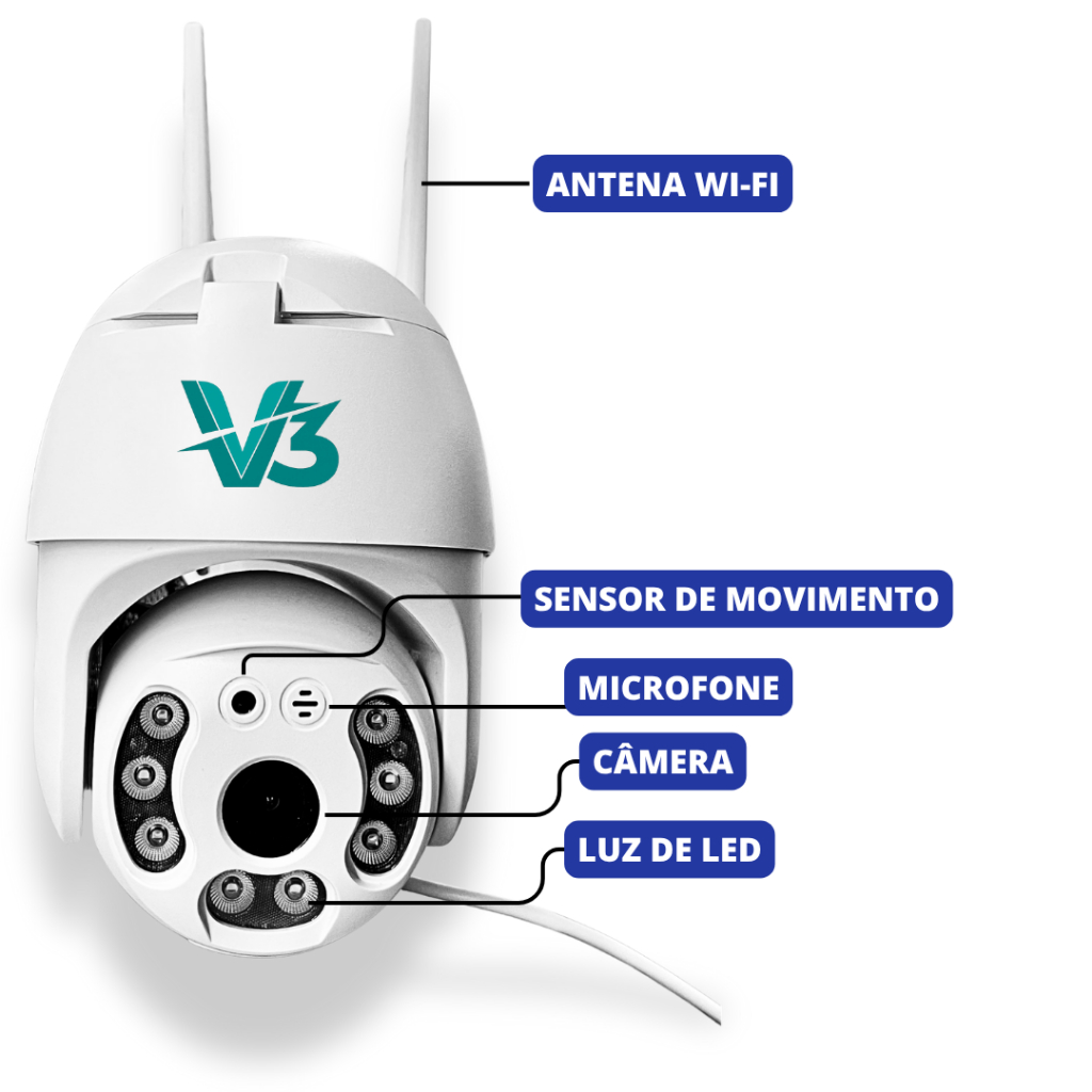 Câmera Inteligente Wi-Fi Full HD 1080p App V3 Áudio Bidirecional LEDs Infravermelhos e Detecção