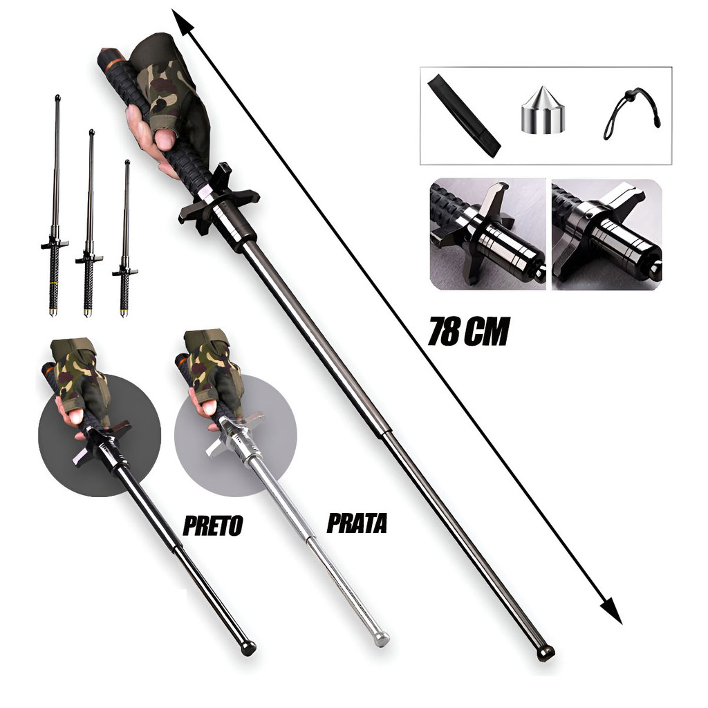 ZCCOBR Baston Autoretrátil 2 fases Abre Automático Aço Reforçado Forte 66 cm