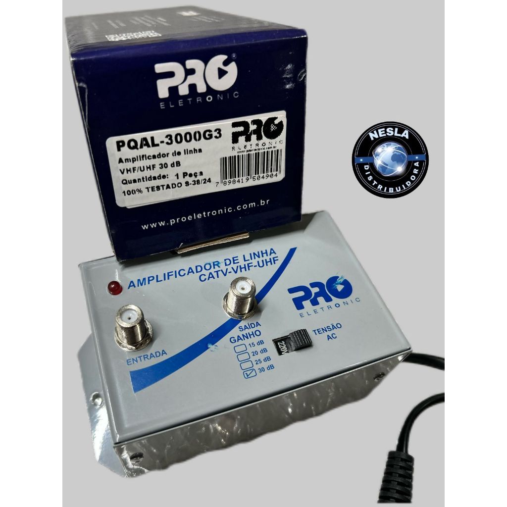 AMPLIFICADOR DE LINHA VHF/UHF 30DB PRO ELETRONIC - PQAL/3000