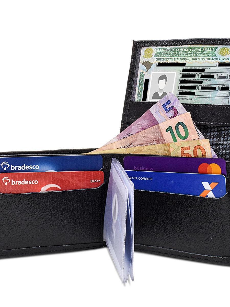 CARTEIRA MASCULINA EM COURO SLIM COM PLASTICO PORTA CARTOES