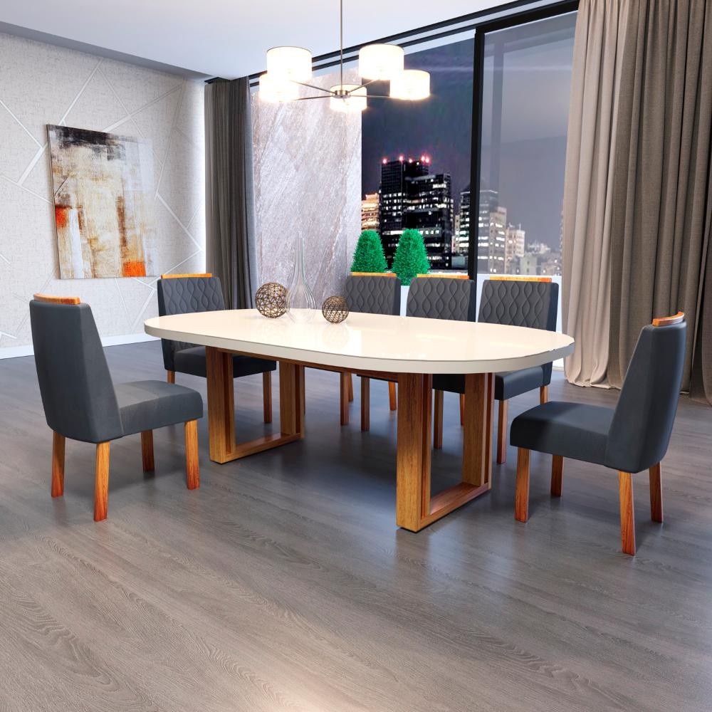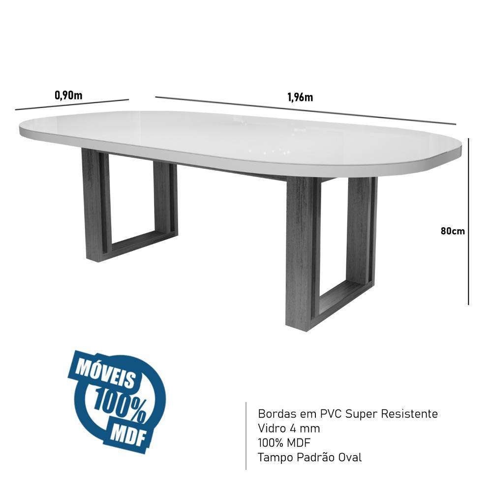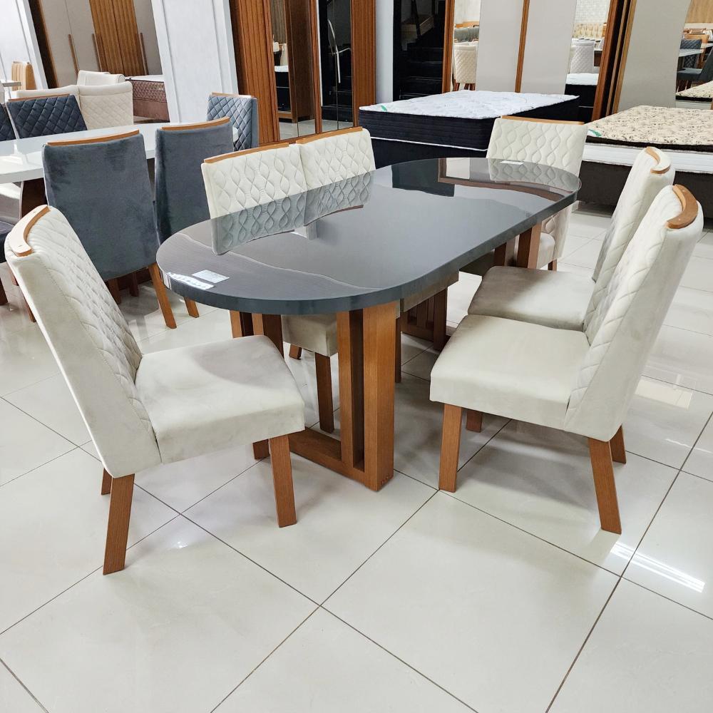Sala de Jantar 196x90 Karen MDF/Vidro 6 Cadeiras Bom Pastor
