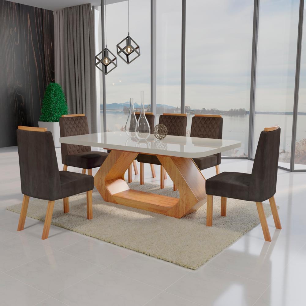 Sala de Jantar 180x90 Lottus MDF/Vidro 6 Cadeiras Bom Pastor