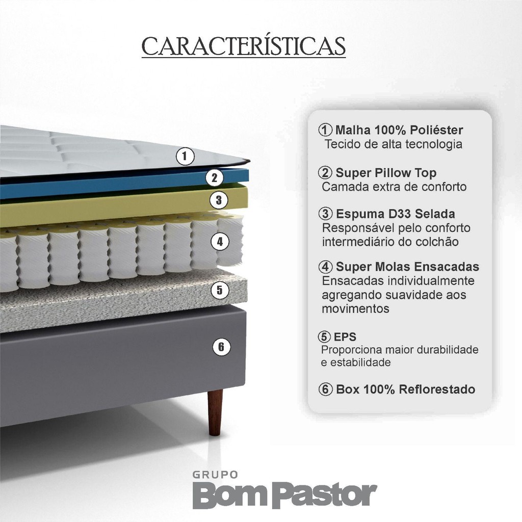 Colchão Casal Molas Ensacadas Colorado + Base 138x188x67