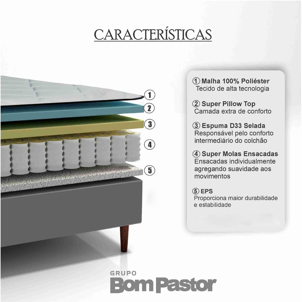 Colchão Casal Molas Ensacadas Fiori 138x188x30 Bom Pastor
