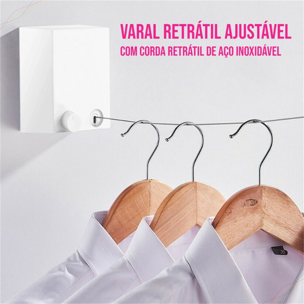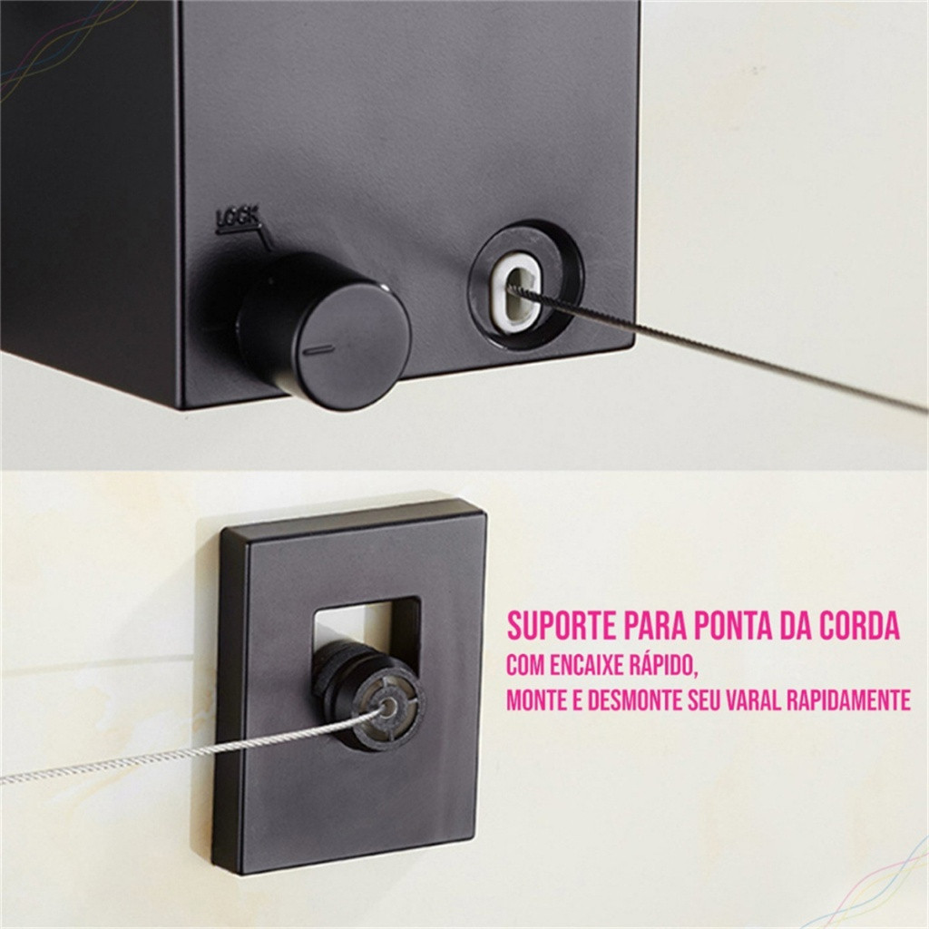 Varal Retrátil Corda De Aço Inoxidável C Suporte Parede 4,2M Suporta até 20kg