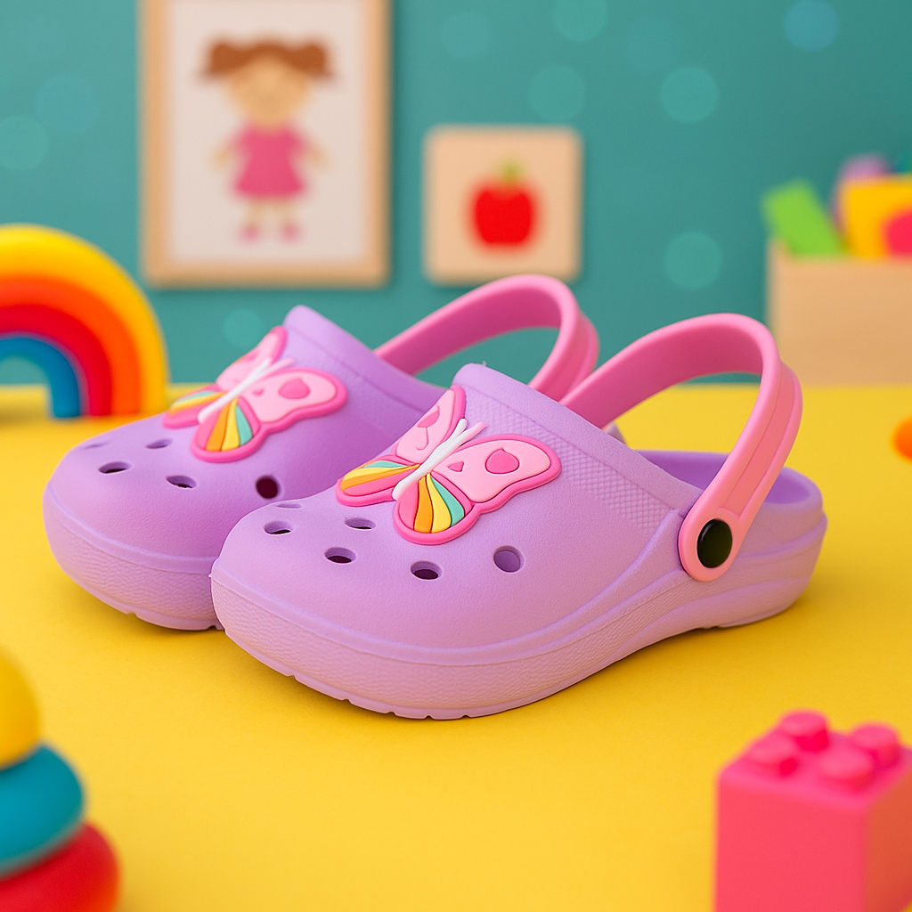 Babuche Sandalia Infantil Menina Lilás Borboleta Colorida Alça Rosa Confortável Leve Antiderrapante Fofo Dia a Dia