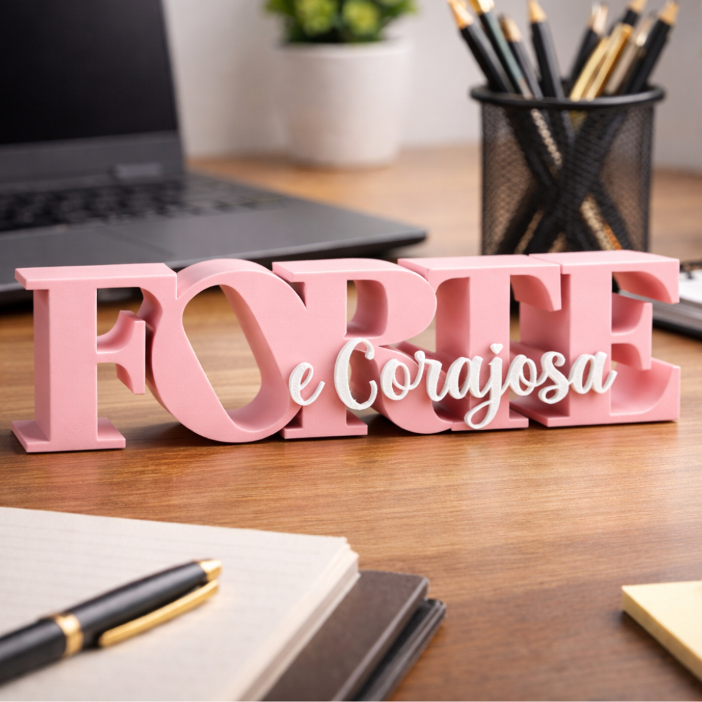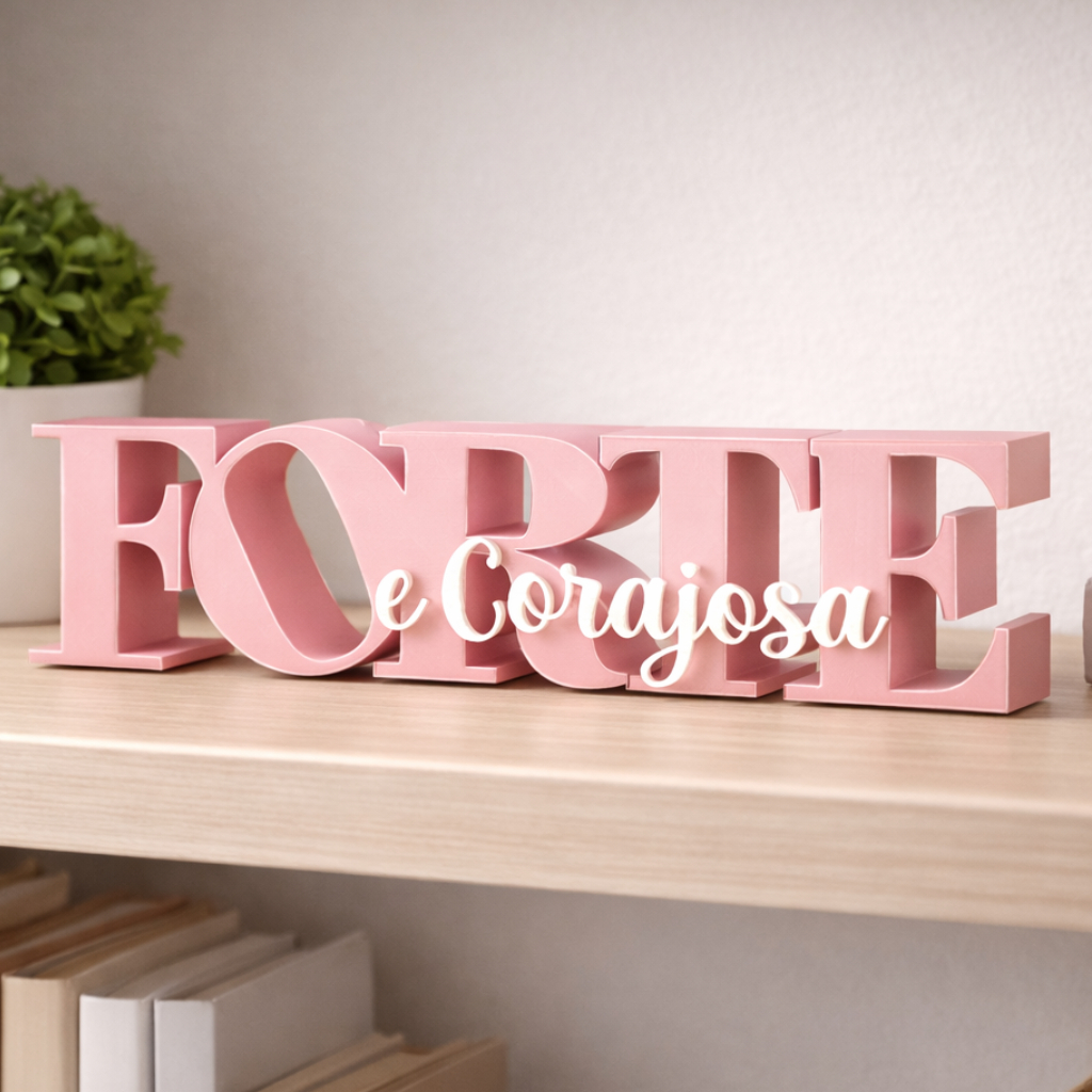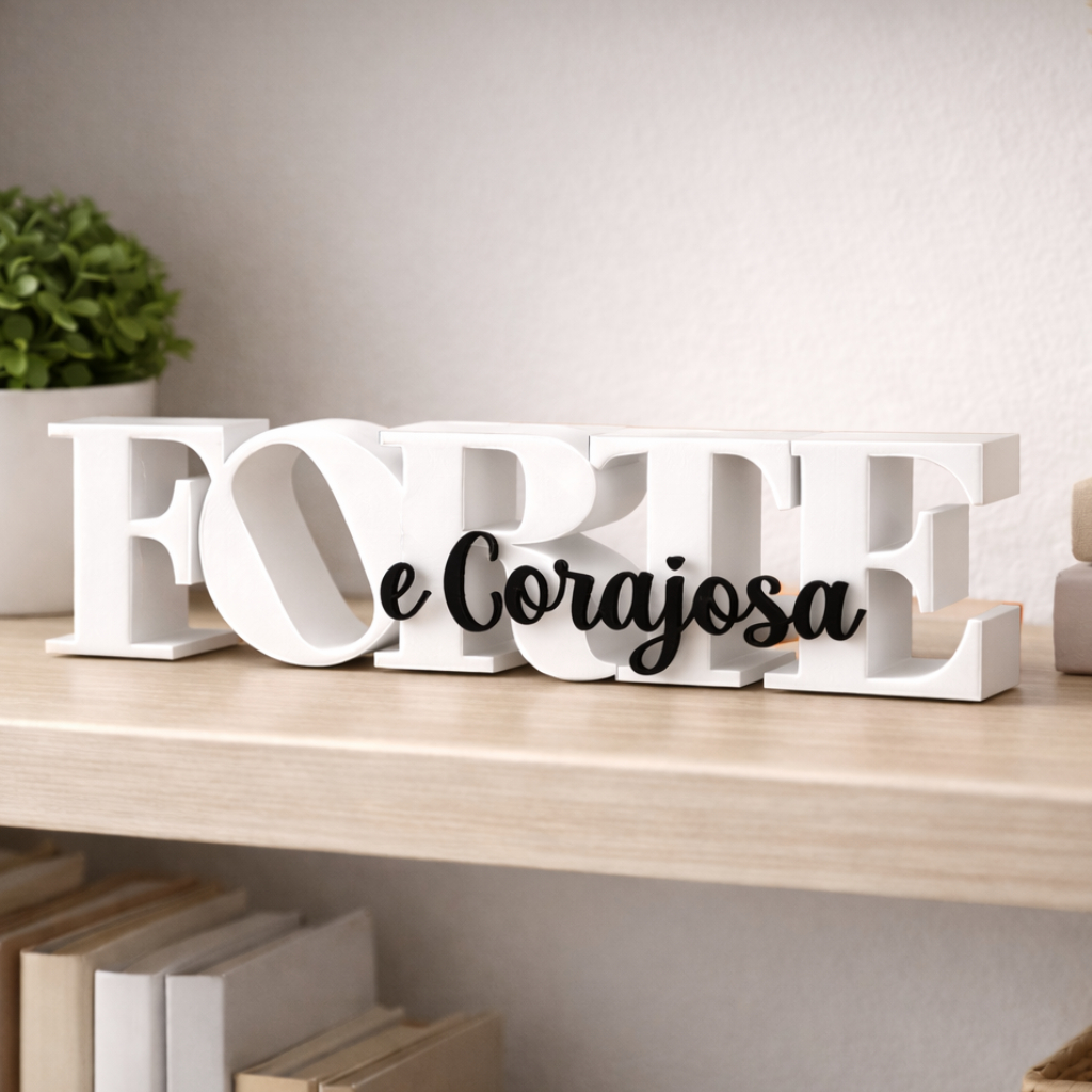 Placa decorativa FORTE E CORAJOSA moderna e elegante para estante, sala ou mesa Envio Imediato