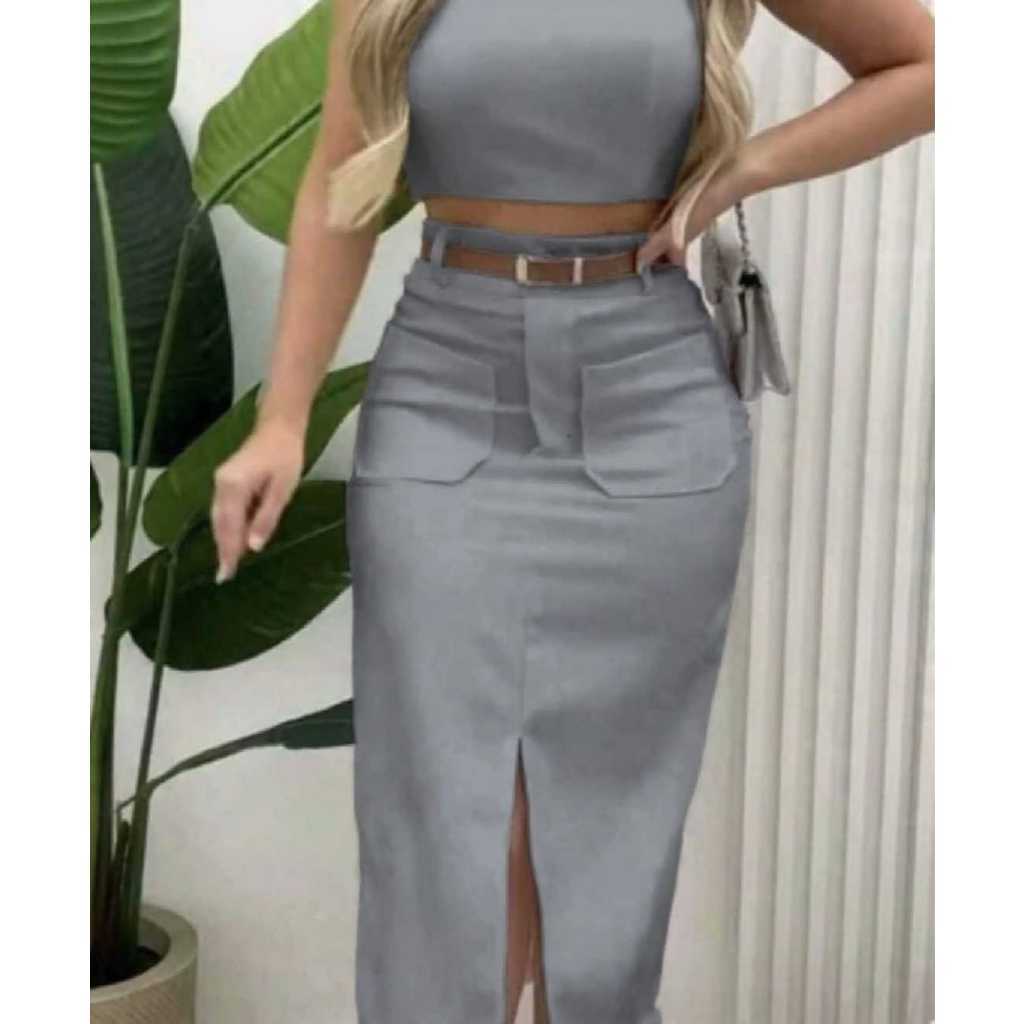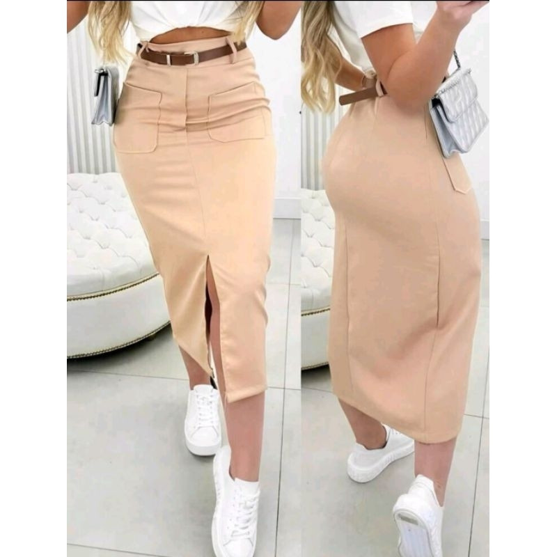 Saia Midi Alfaiataria Com Bolso Frontal Moda evangélica Estilosa festa
