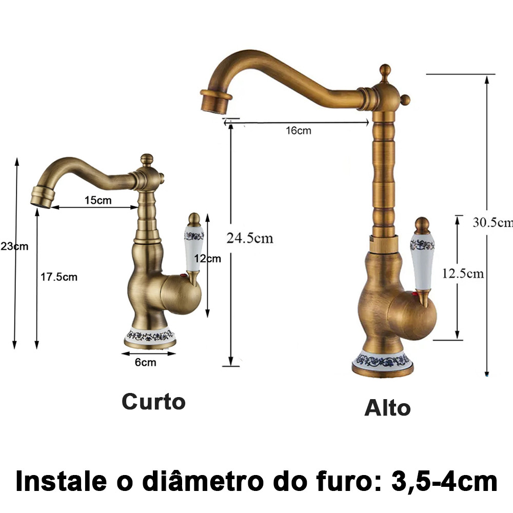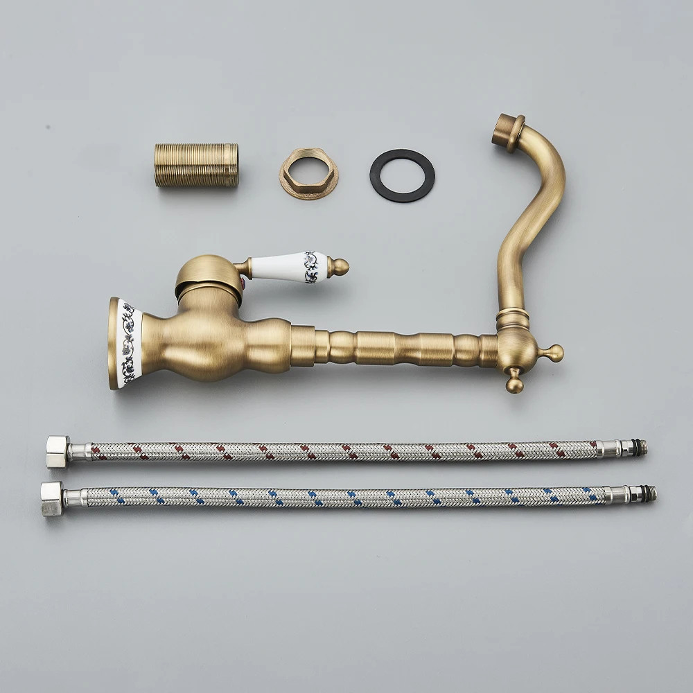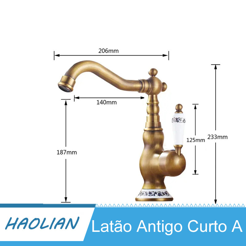 Torneira De Cozinha De Latão Antigo Torneira Misturadora Quente E Fria Único Furo Para Banheiro Alça De Porcelana