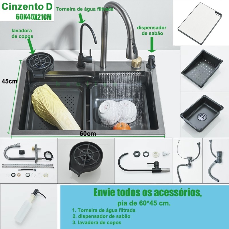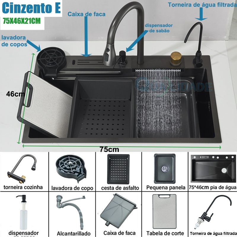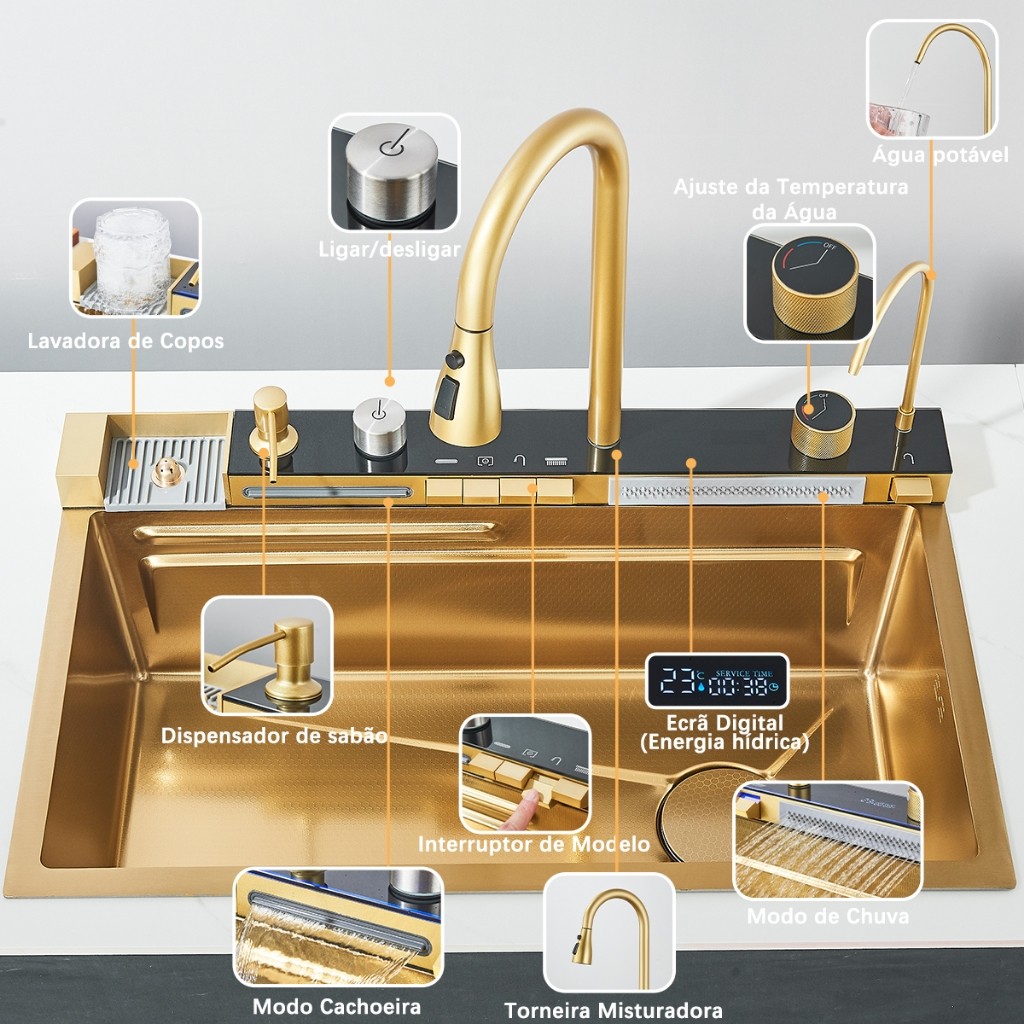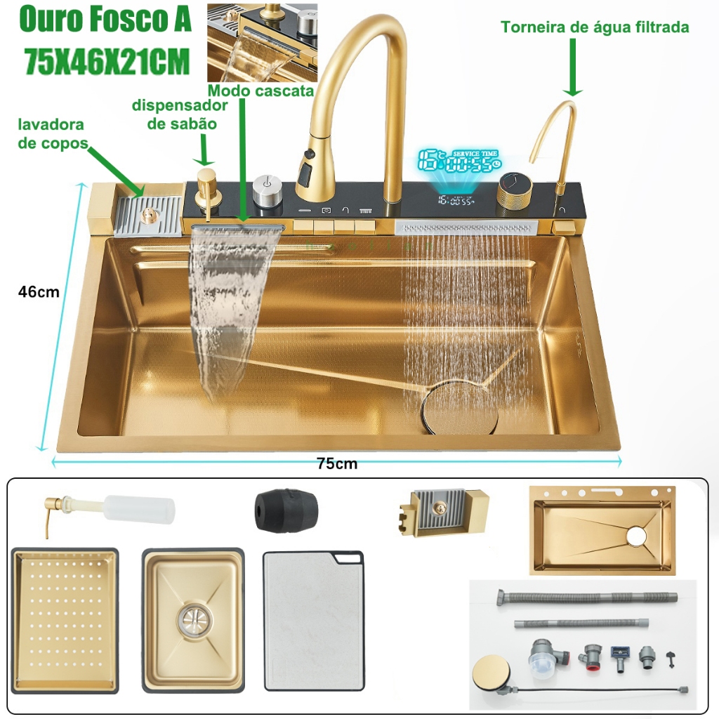 Kit Cuba Cozinha Gourmet Luxo Aço Inox 304 Ouro Fosco Com Acessórios Conjunto De Torneiras 75cm