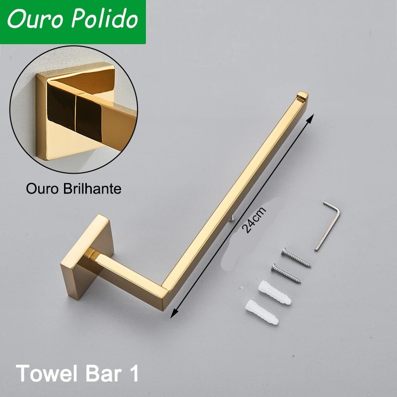 Suporte De Toalha Quadrado De Aço Inoxidável Para Banheiro , Único 24cm Preto/Prata/Dourado
