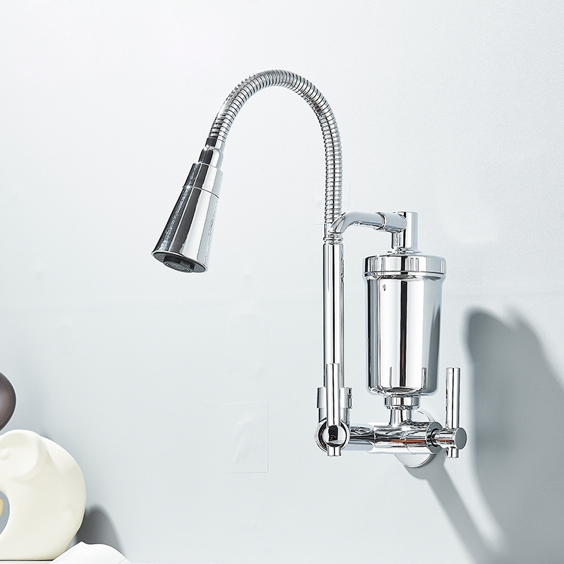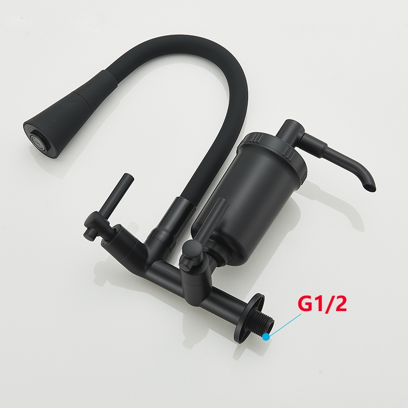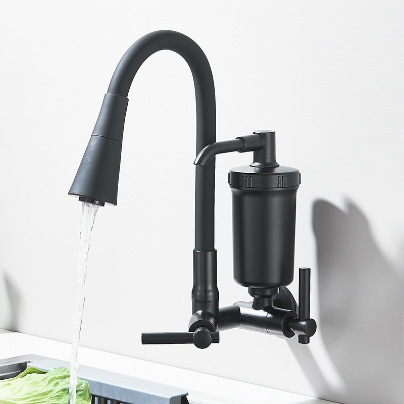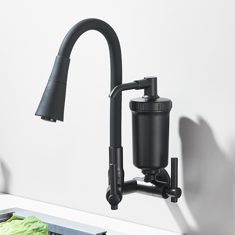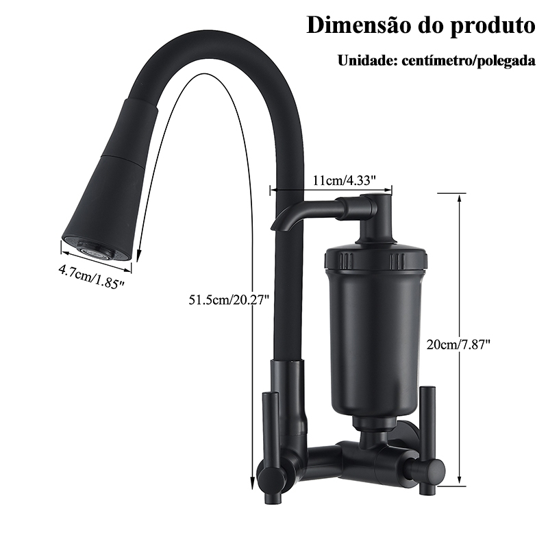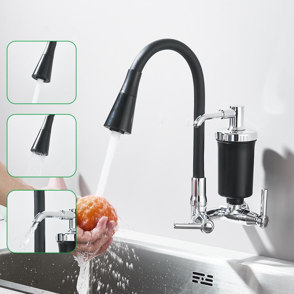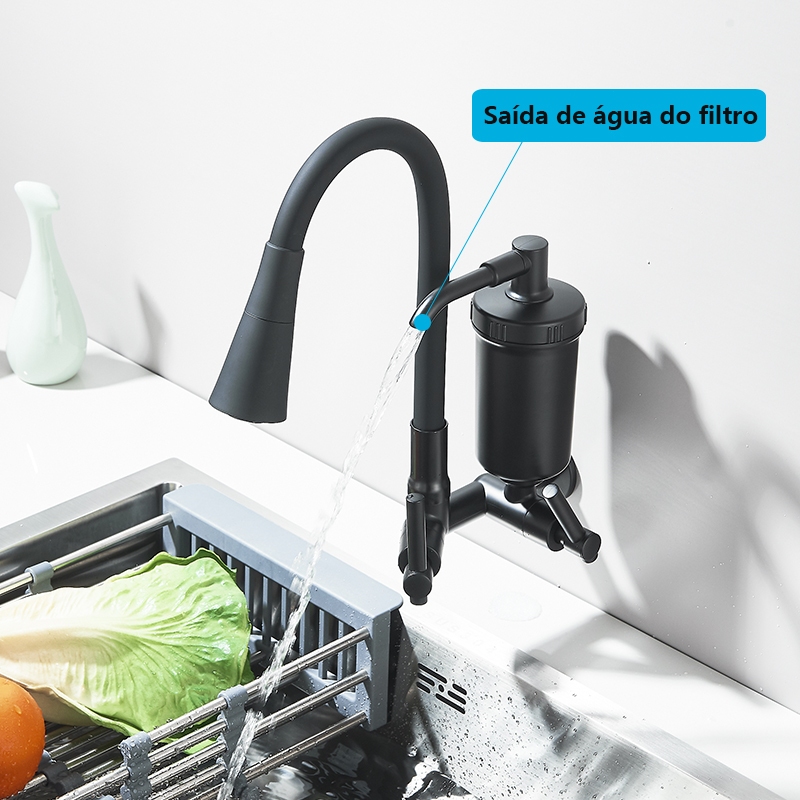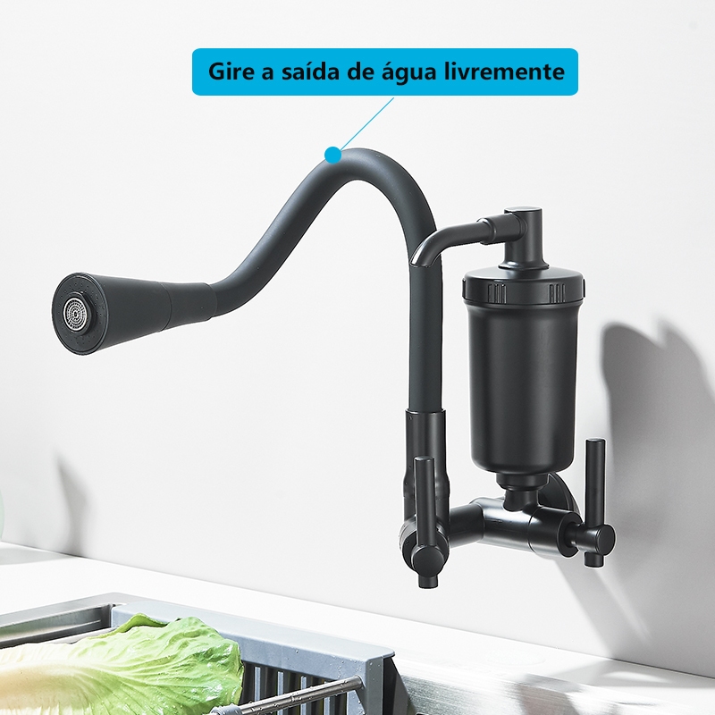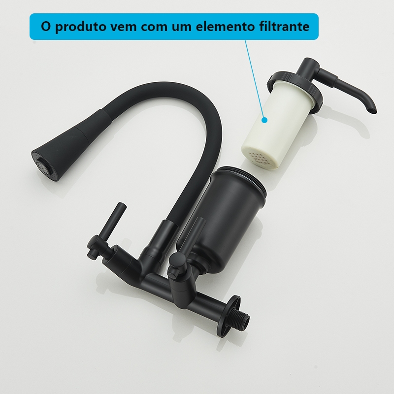 Torneira Flexível Gourmet Da Cozinha Com Filtro Fino Para A Luxuosa Parede Preta/Cromado