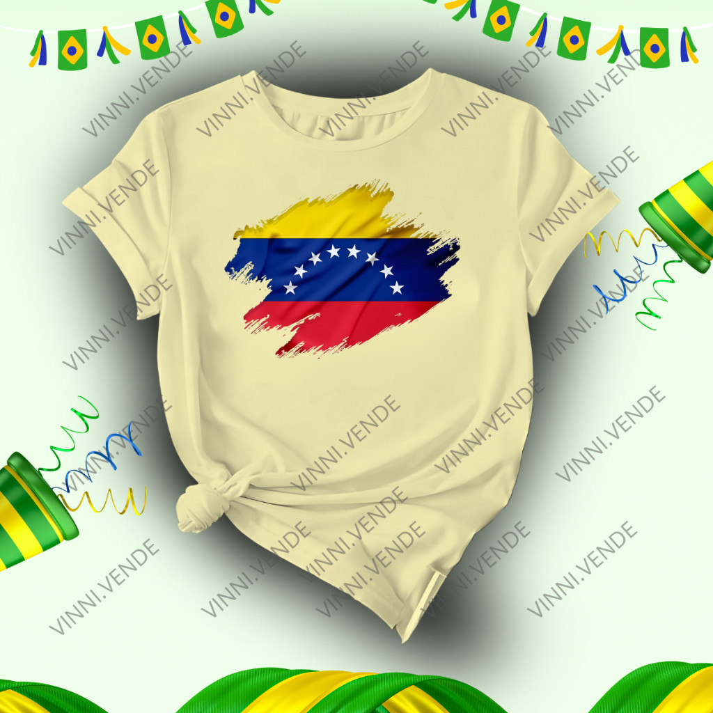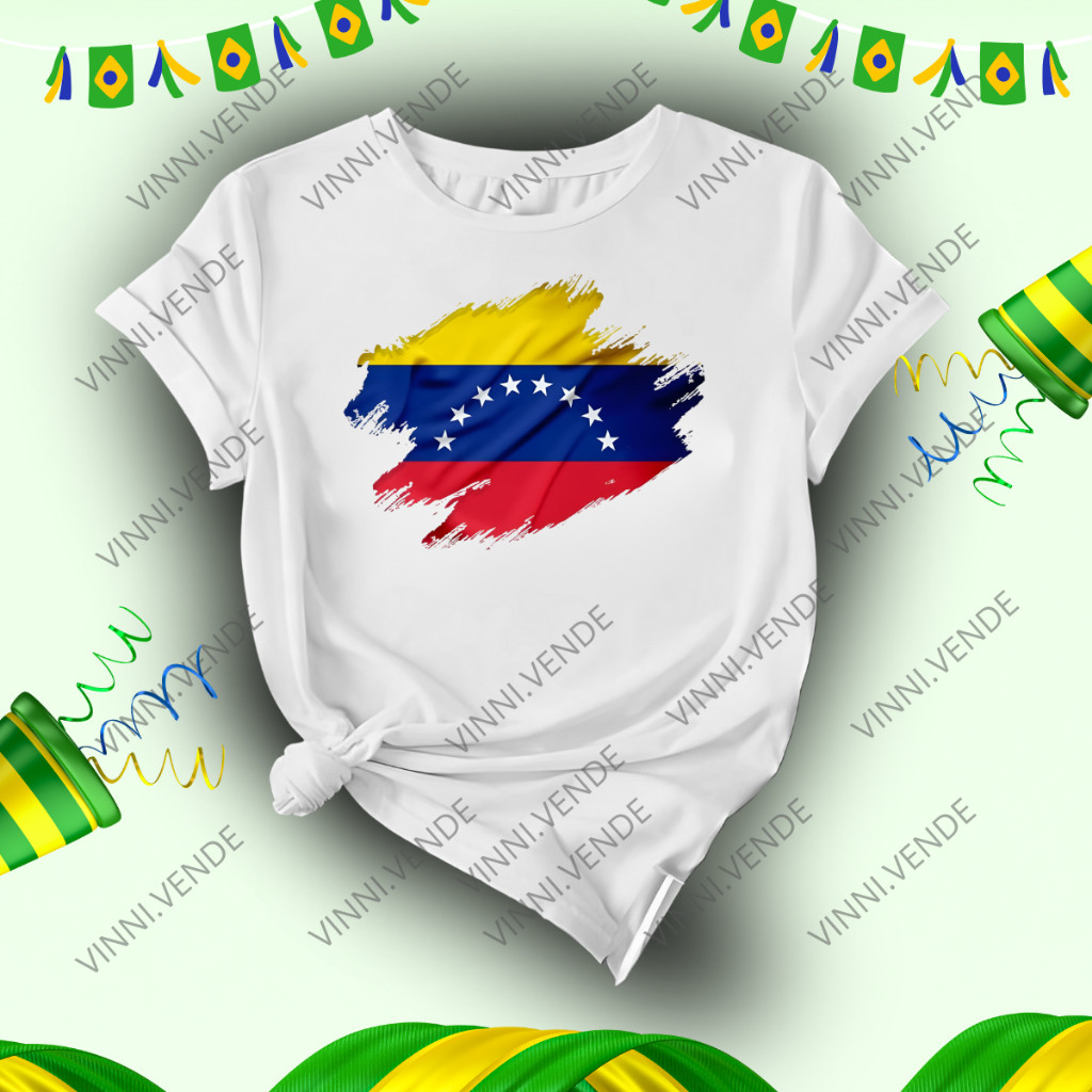 Camiseta Unissex Bandeira Venezuela Blusa 100% Algodão Manga Curta Copa do Mundo
