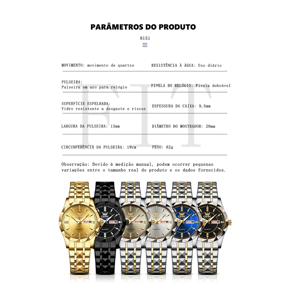 【Local do Brasil】OPK 8151 Relógio feminino original de aço inoxidável luminoso à prova d'água Estilo de pares