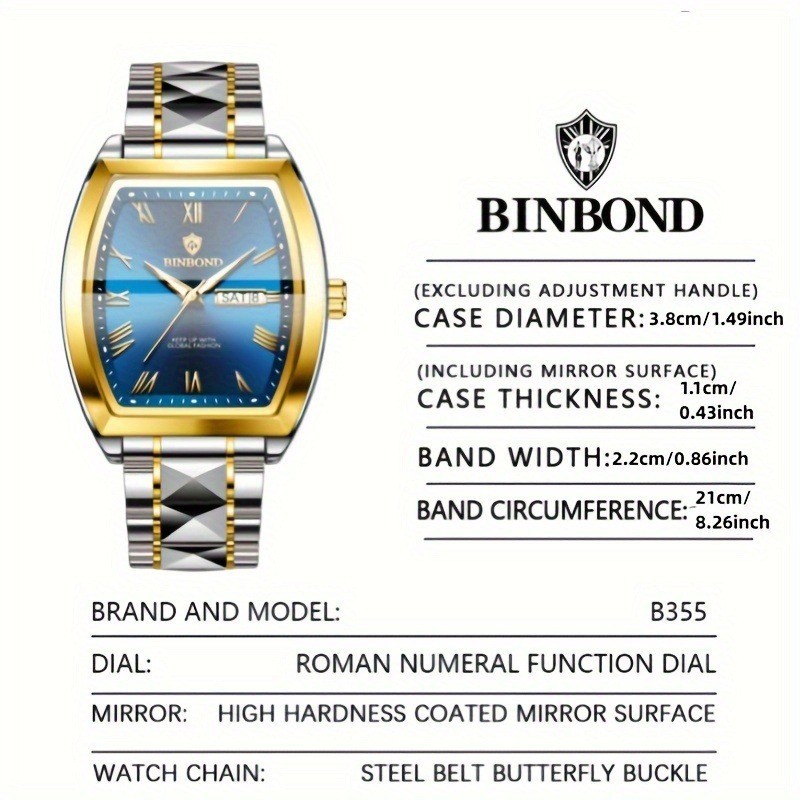 【Local do Brasil】Modelo em Promoção BINBOND 355 Relógio de Quartzo Estilo clássico Prova D'água Relógio de negócios