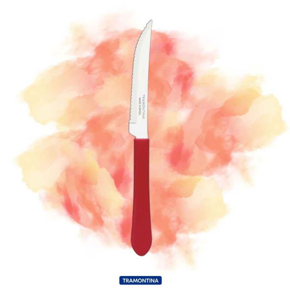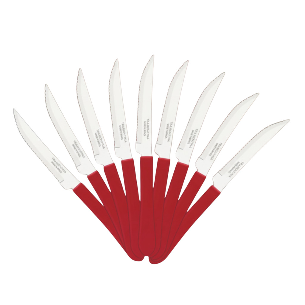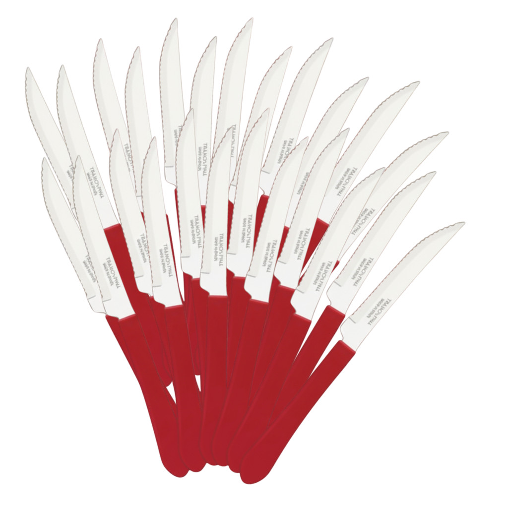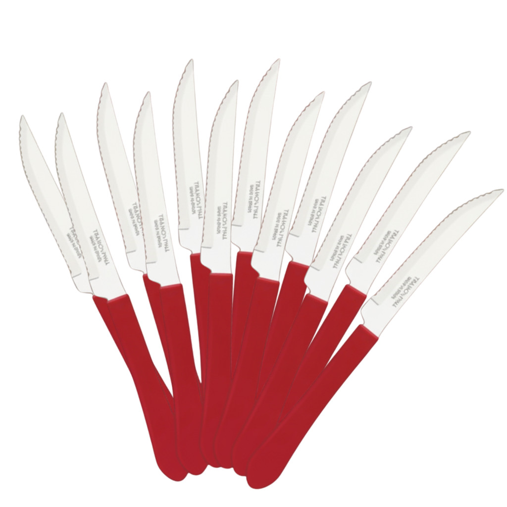 Kit 6, 9, 12 ou 24 Facas Tramontina Leme Para Churrasco Cabo Vermelho Serra
